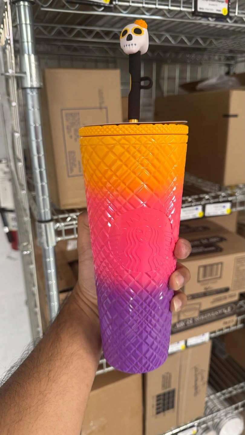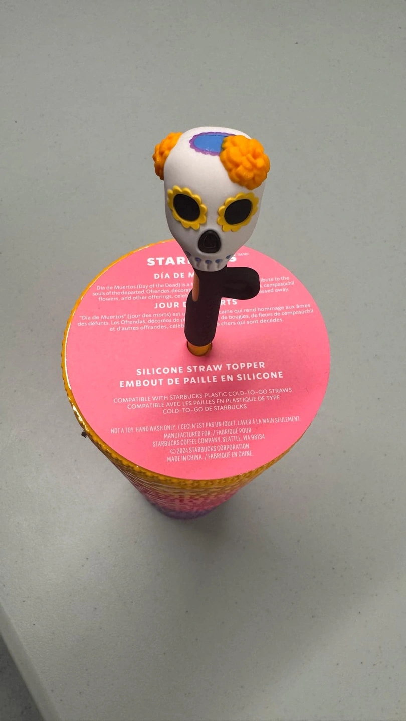 Starbucks tumbler with a Day of the Dead themed design. Includes a silicone straw topper. Pickup parklawn and lakeshore