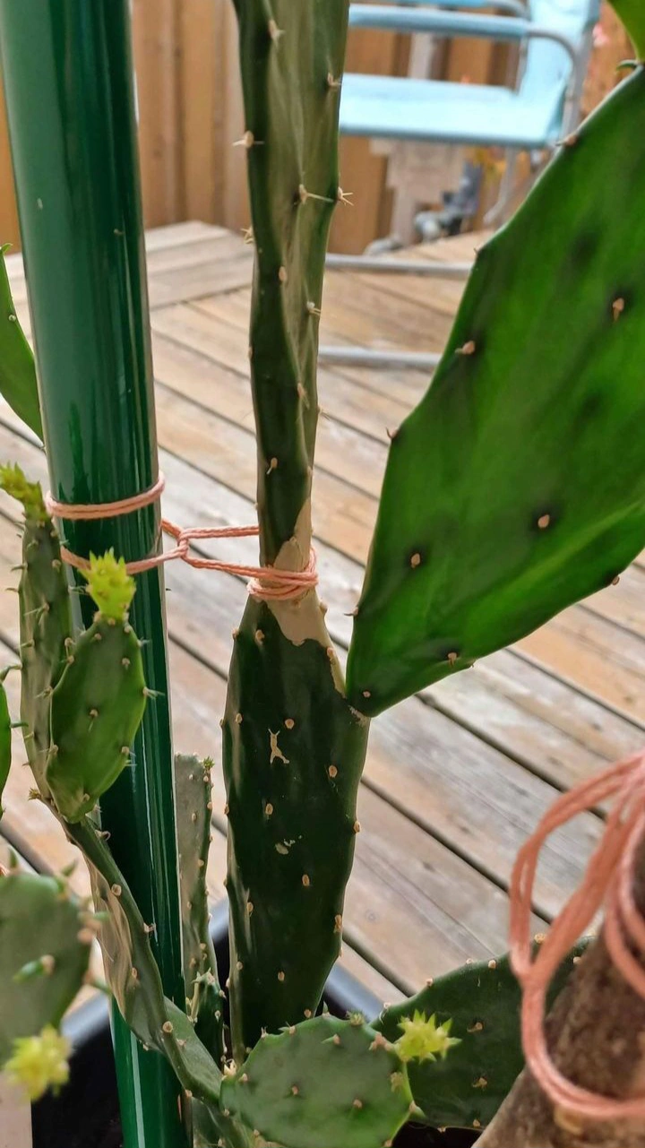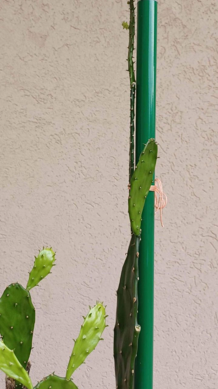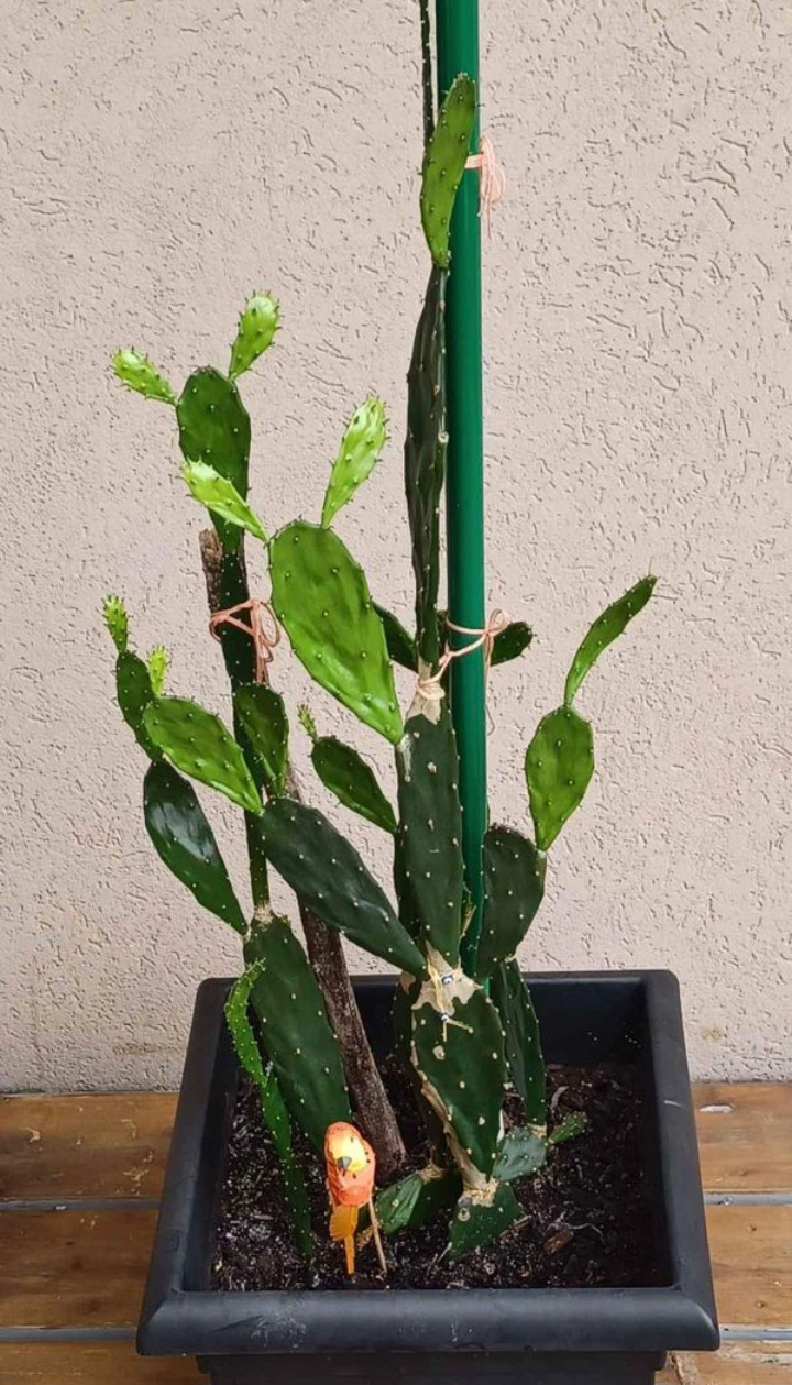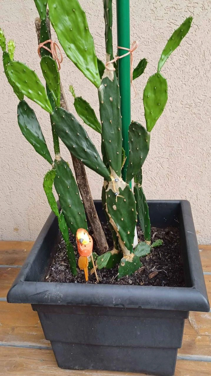 Large prickly pear cactus in a black pot with a green stake and twine. Healthy and ready for your garden or home office. The pot is approximately 12 inches in diameter. It's a gorgeous Cactus plant if you like Cactus. The tallest is 38" long Indoor- outdoor, blooming babies a lot, Great present Pick up location, Eastmall and Rathburn