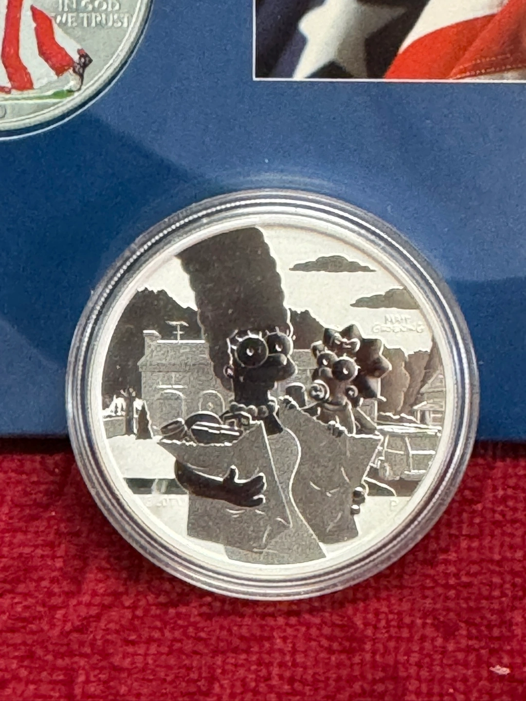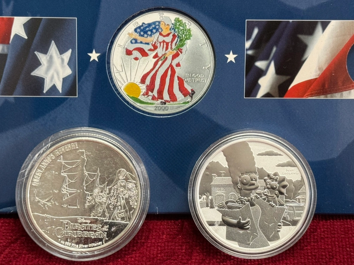 Simpsons Marge 1 oz pure silver coin $65 Pirates of the Caribbean 1 oz pure silver $65 Colour Liberty 1 oz $65