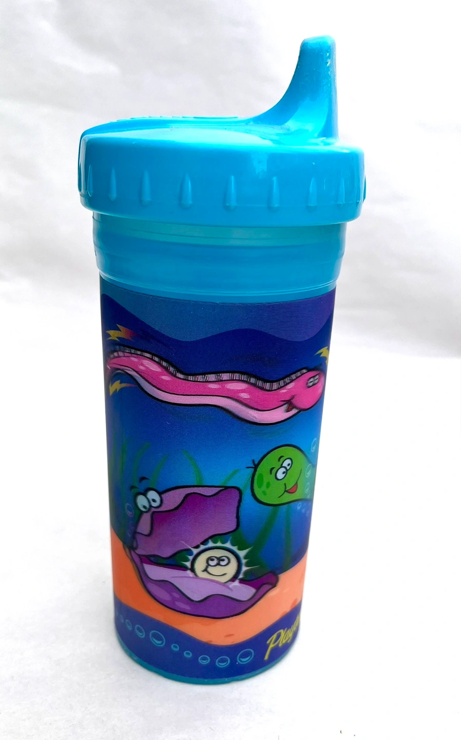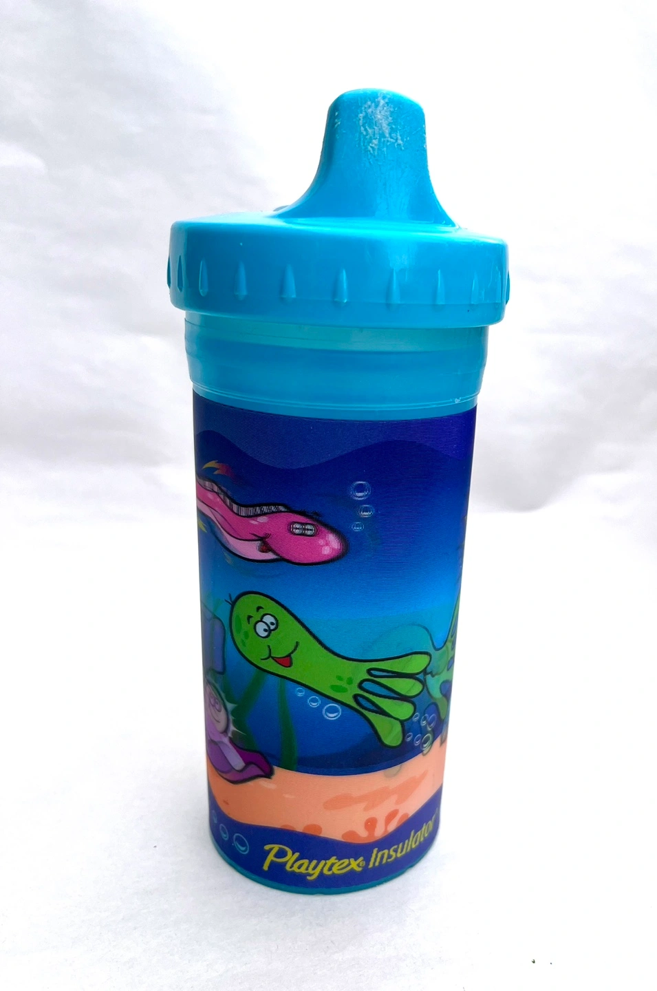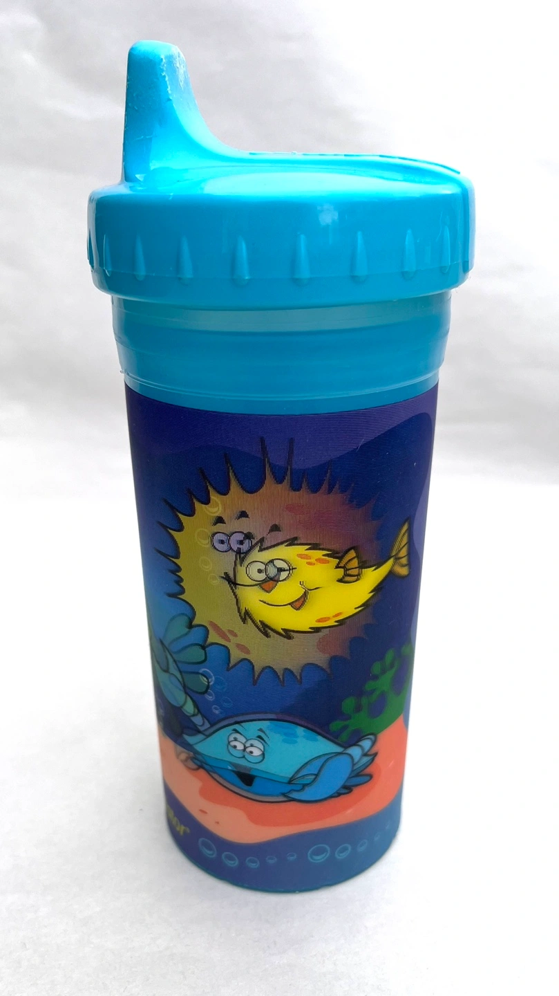 Blue sippy cup with sea creature design. Spout lid. Insulated. Free