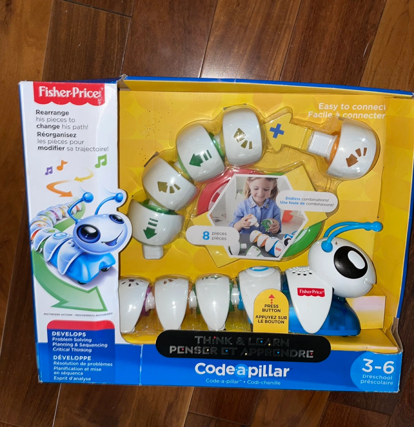 - Brand new and never used •1 motorized head and 8 easy-to-connect segments for endless combinations! • Kids connect the segments to make Code-a-pillar go forward, left, right or wherever they choose • Each segment lights up as the action happens! • Motorized head segment features lights, fun character sounds and blinking eyes to bring Code-a-pillar to life! • Can you reach the target? Challenge kids to configure the segments so Code-a-pillar can get to the targets and reach their goals