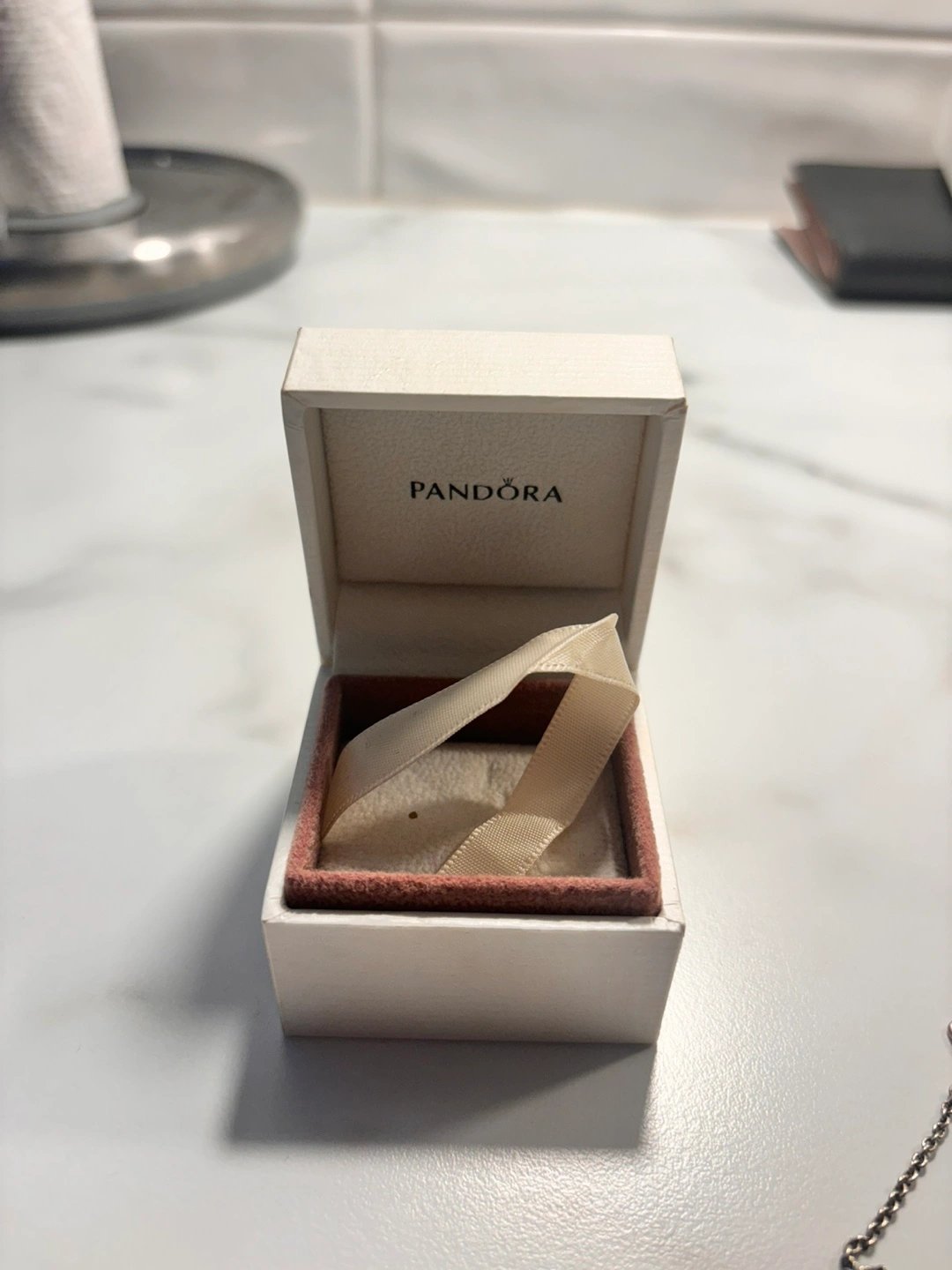Silver bracelet with a horseshoe charm. Comes with a pandora box but not the original