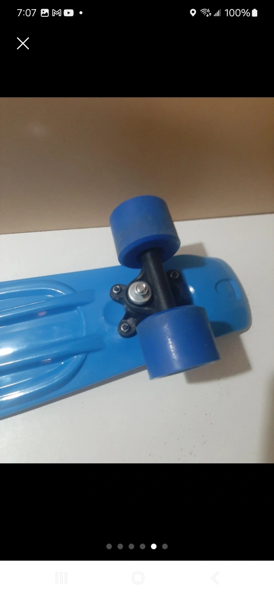 Blue penny board, used but in good condition. Includes a kicktail and black trucks. The wheels are blue. price only cash no delivery only pickup. 801 O'Connor drive outside TD bank door
