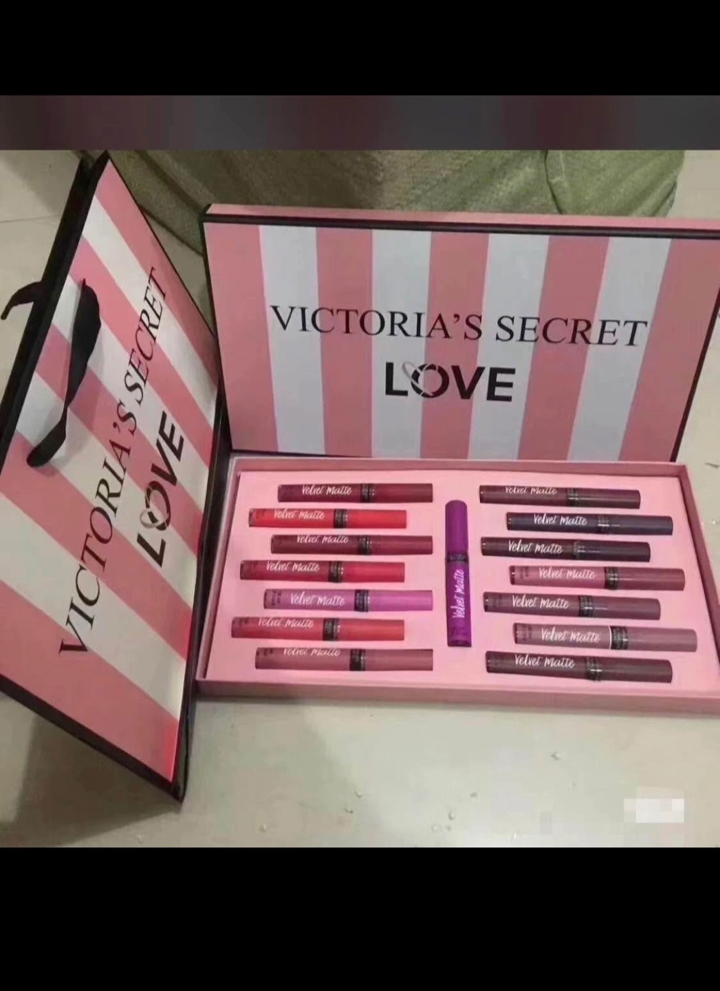 Gift set includes perfume, lipstick, eyeliner, mascara and a makeup brush. All items are in the original box.