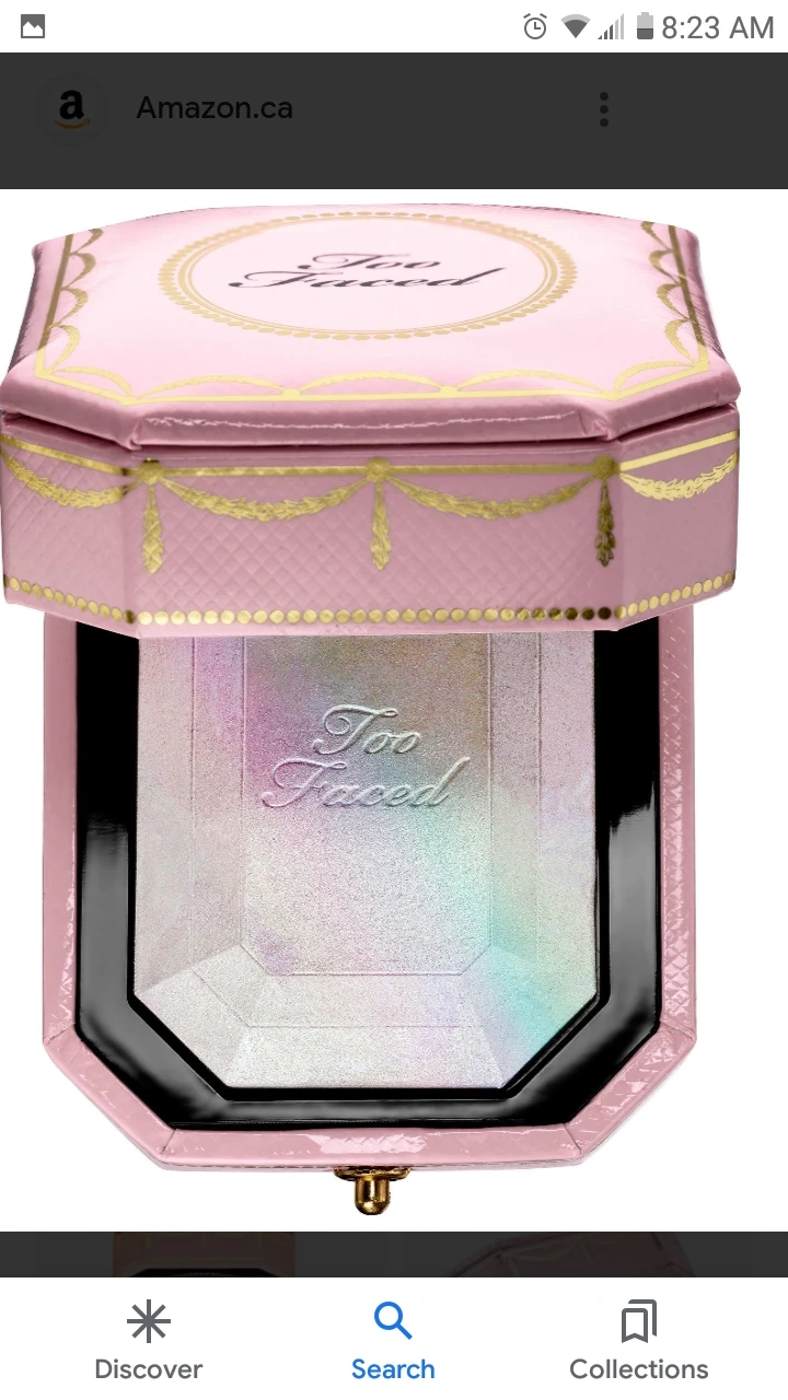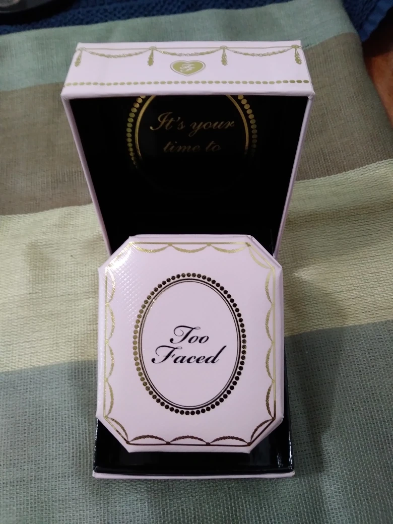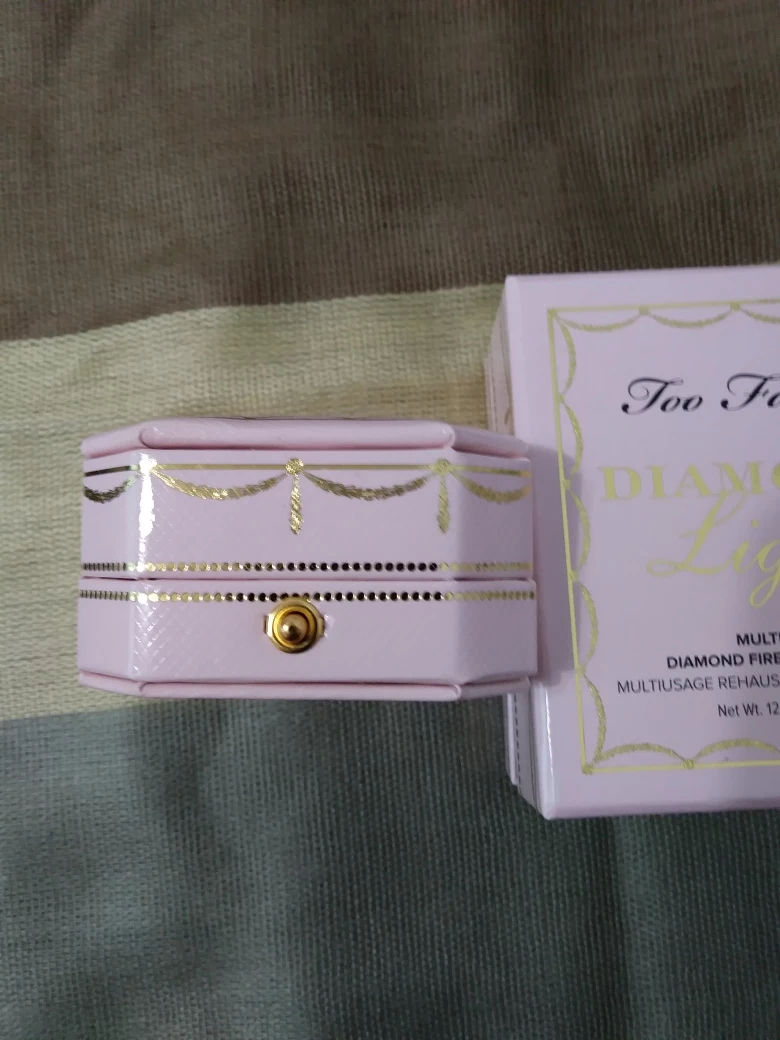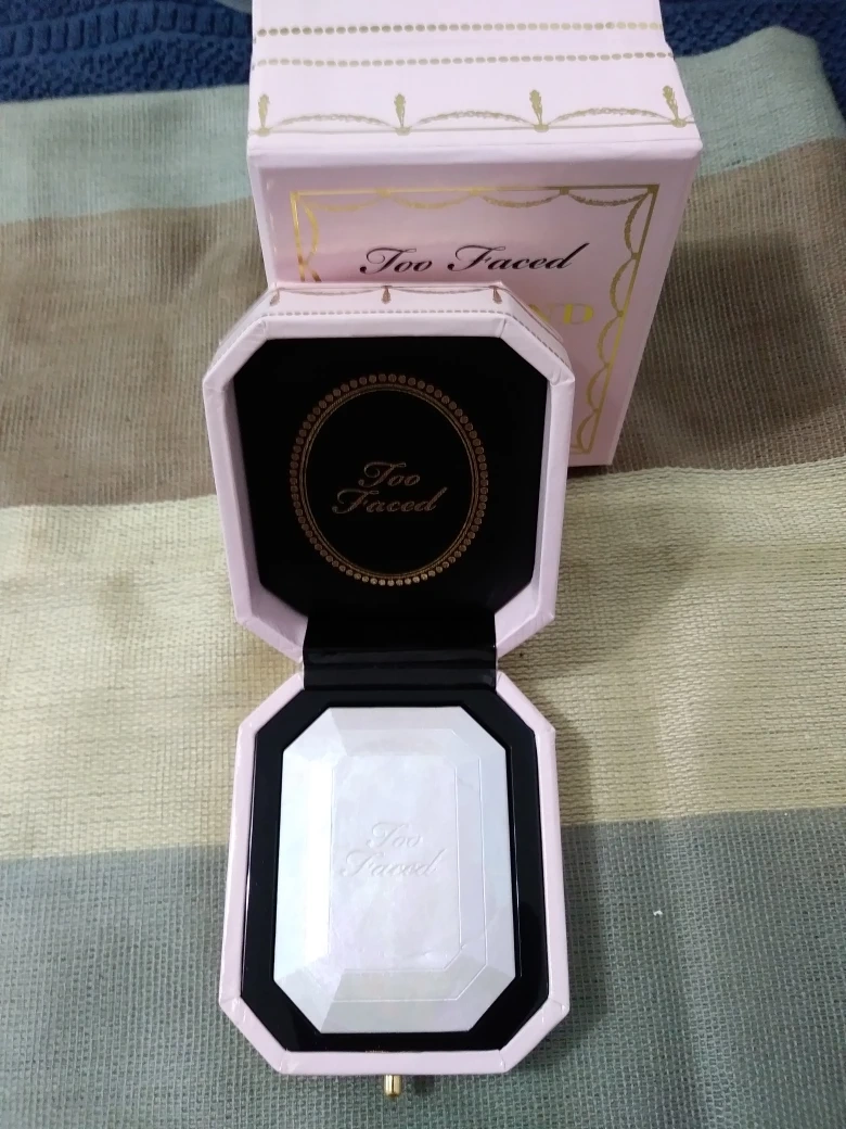 Too Faced Diamond Light highlighter. Pink compact with gold accents.