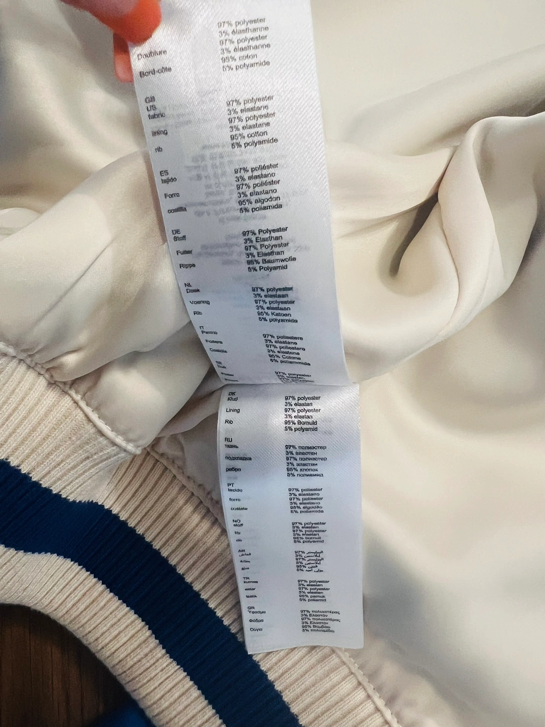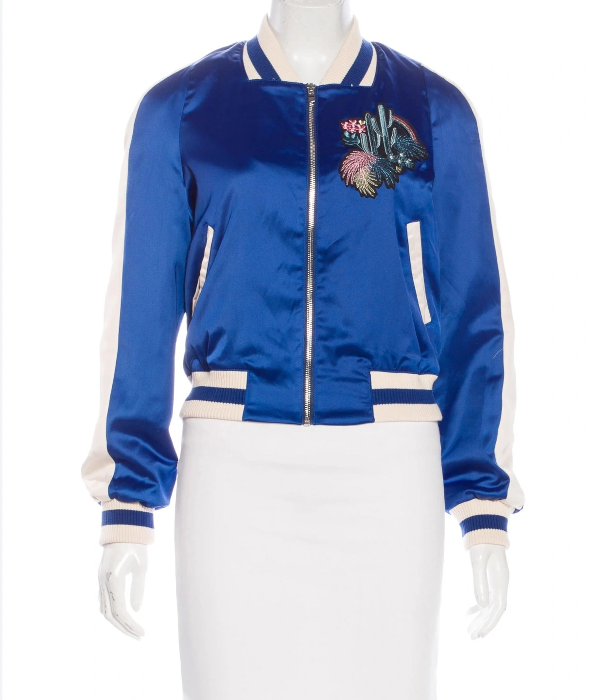 Chic, sophisticated but super trendy. Can be worn with any outfit for any season. Condition: overall good with minor wear Measurement: refer to photos Pet/Smoke free home 🚫 Pick up Yorkdale area📍 Tags: bomber, satin, designer jacket, varsity, summer, fall, IG inspo, bloggers fav, fall jacket