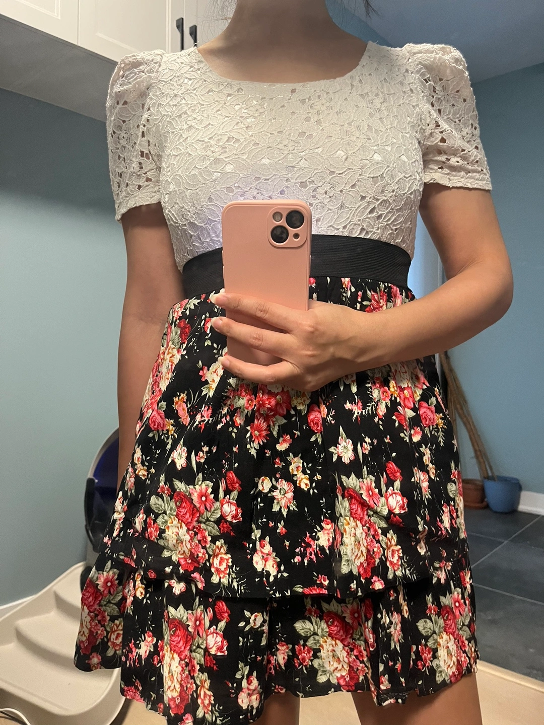 Fits a size S-XS, short lace floral dress. If you need more details, please ask :) Cash & pick up only