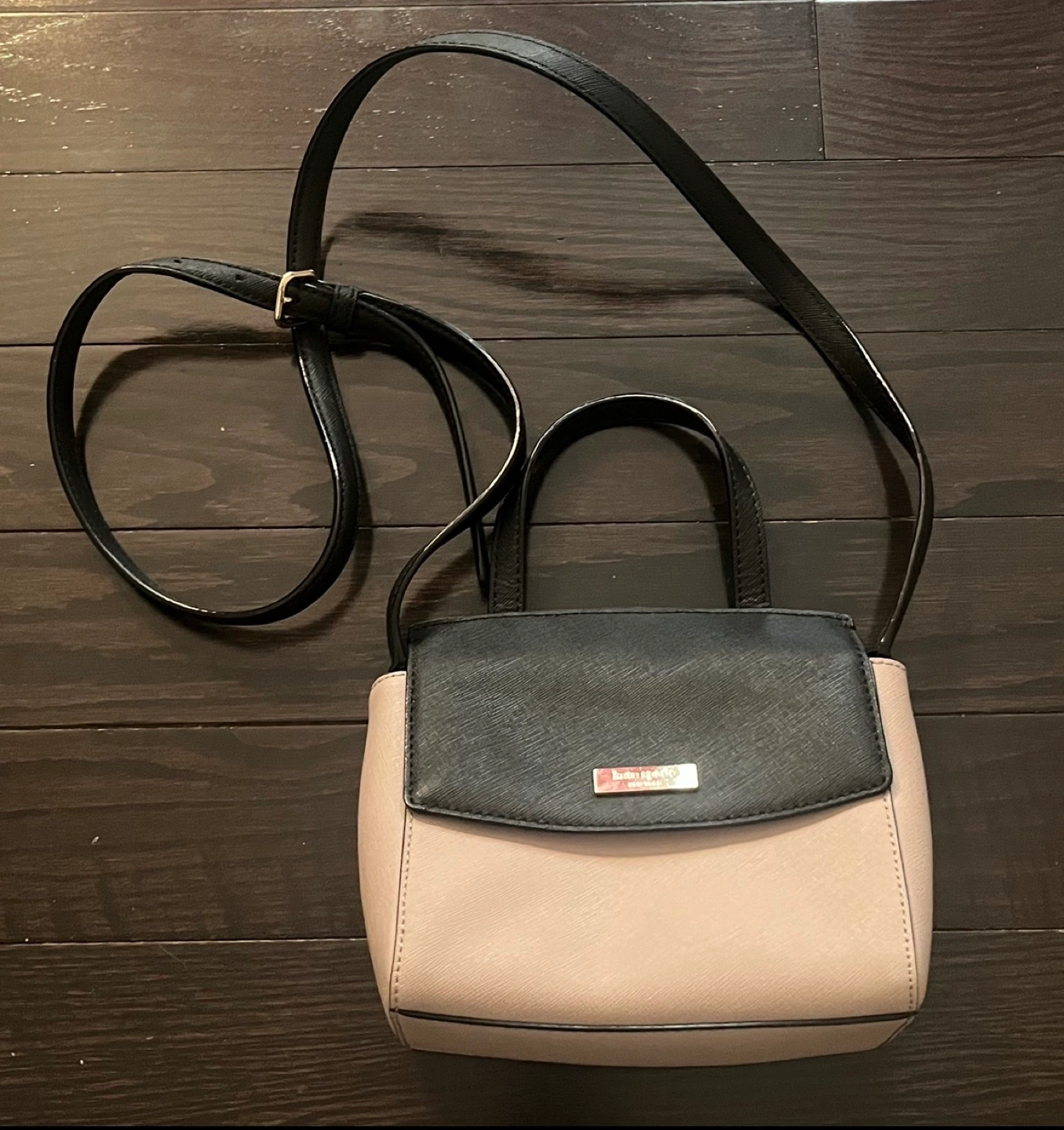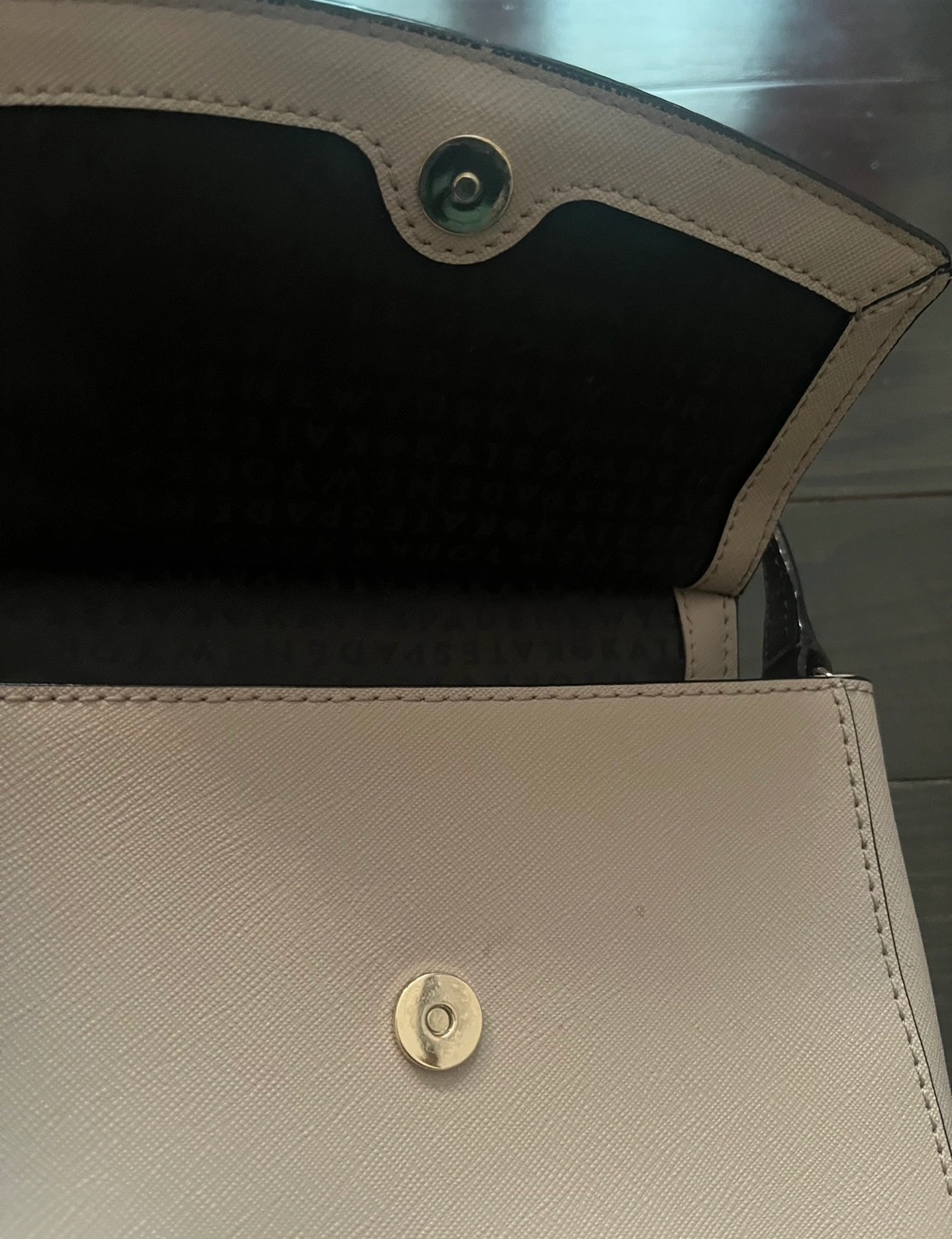 Like new condition, used only twice Pickup Brampton or downtown Toronto This kate spade handbag can also be a satchel bag! Details: •6"h × 7.9"w × 3.2"d • drop length: 4.3" handheld •total adjustable strap length: 44" MATERIAL • metallic crosshatched leather with matching trim •capital kate jacquard lining •14-karat light gold plated hardware DETAILS •crossbody with snap flap closure •interior slide pocket •gold staple kate spade new york signature Includes a detachable strap & a top handle.