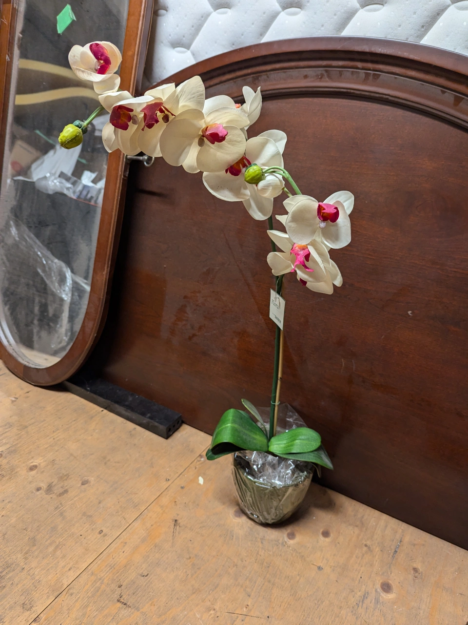 Artificial orchid plant in a pot