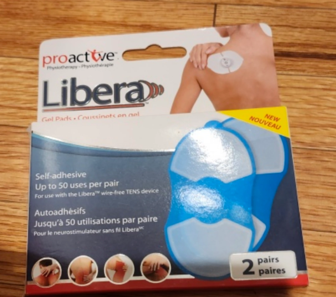 Self-adhesive gel pads for use with the Libera wire-free TENS device. Up to 50 uses per pair. Bought the wrong pad. Passed refund period.