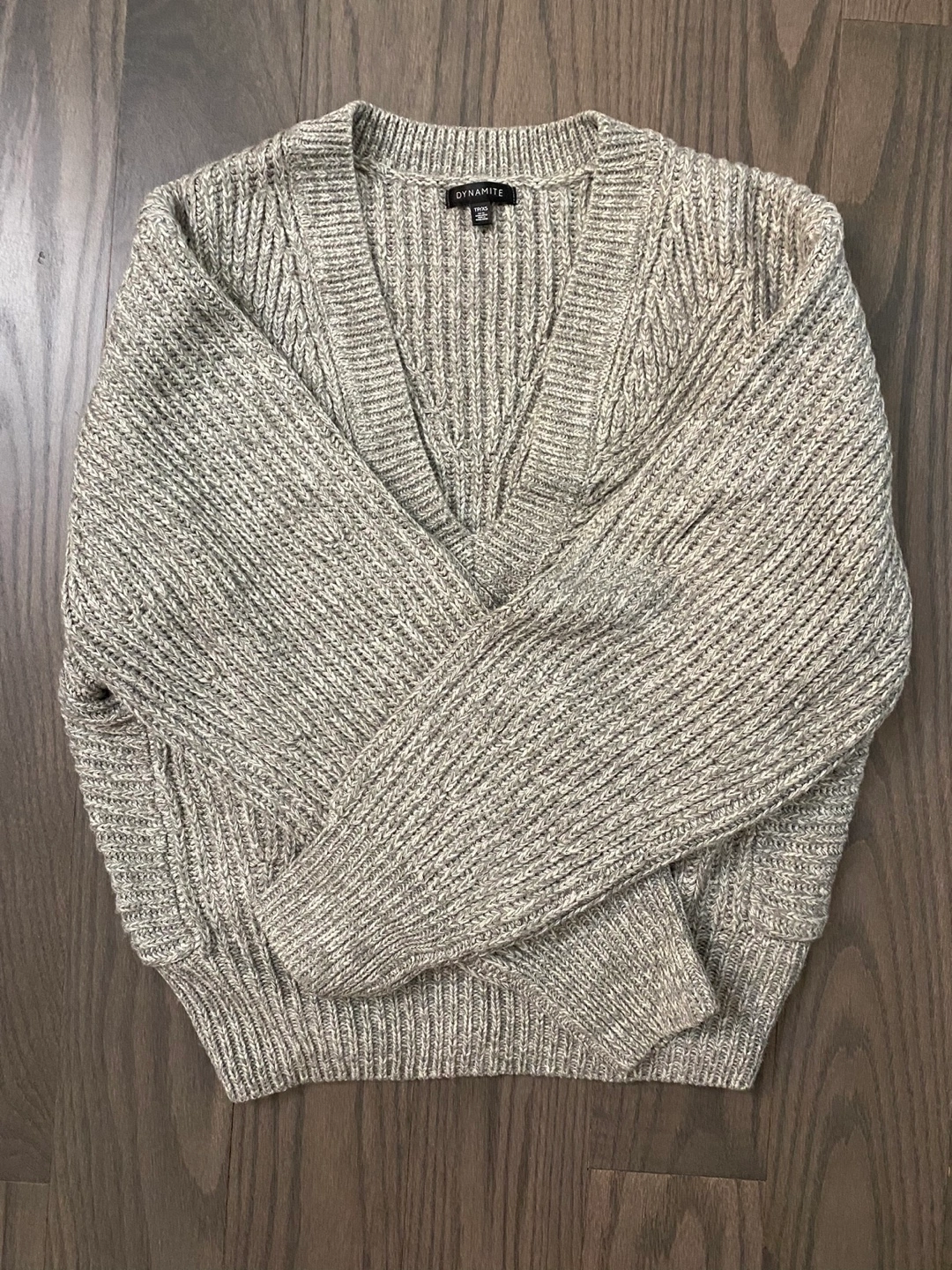 Grey ribbed knit V-neck sweater XS but fits like S Soft material