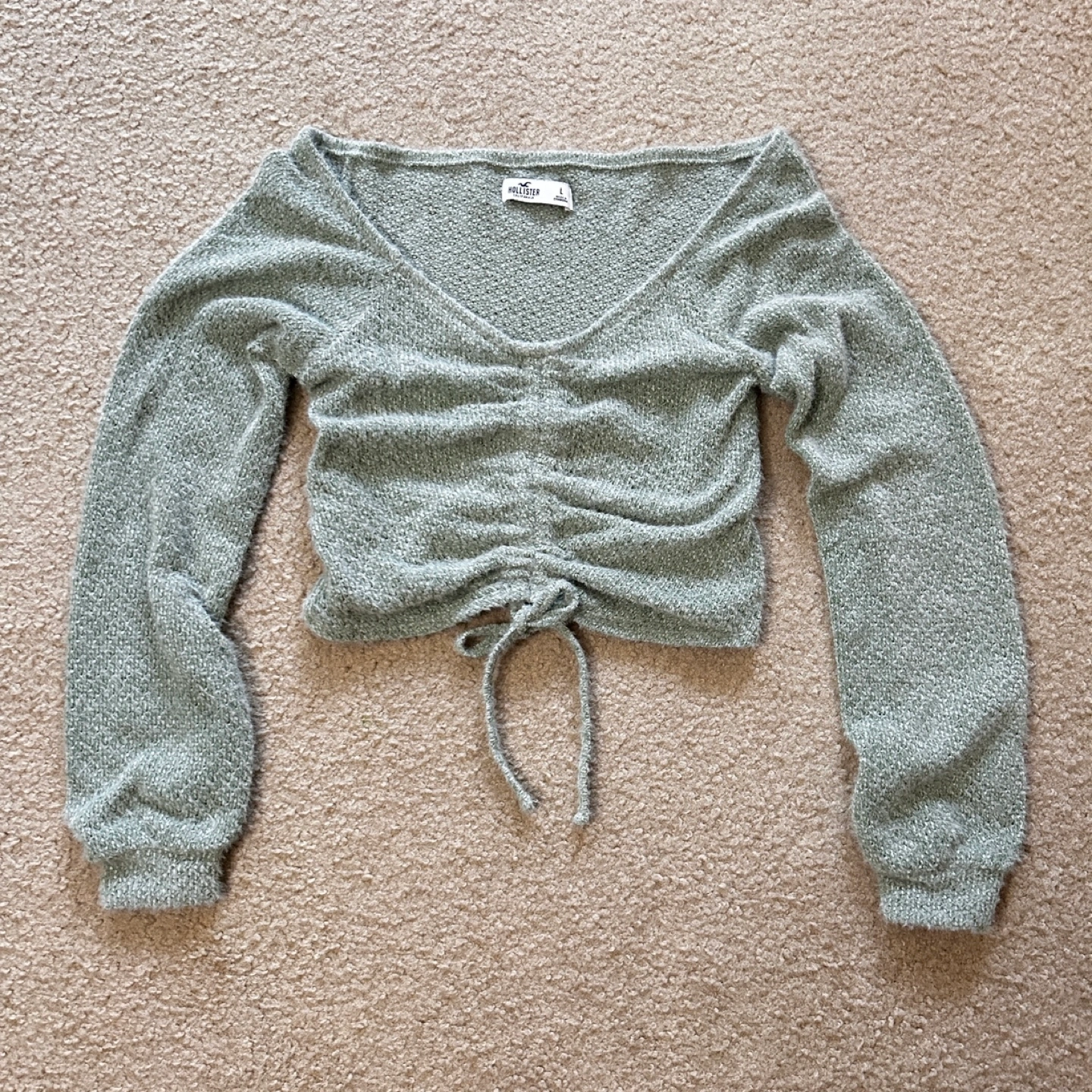 Long-sleeved green sweater with a drawstring. Plush material feels soft and cozy for the cold weather. Cropped style. Like new; wore a couple times. Selling because I am changing my style. Buy multiple items for a discount. Pick up and cash only.