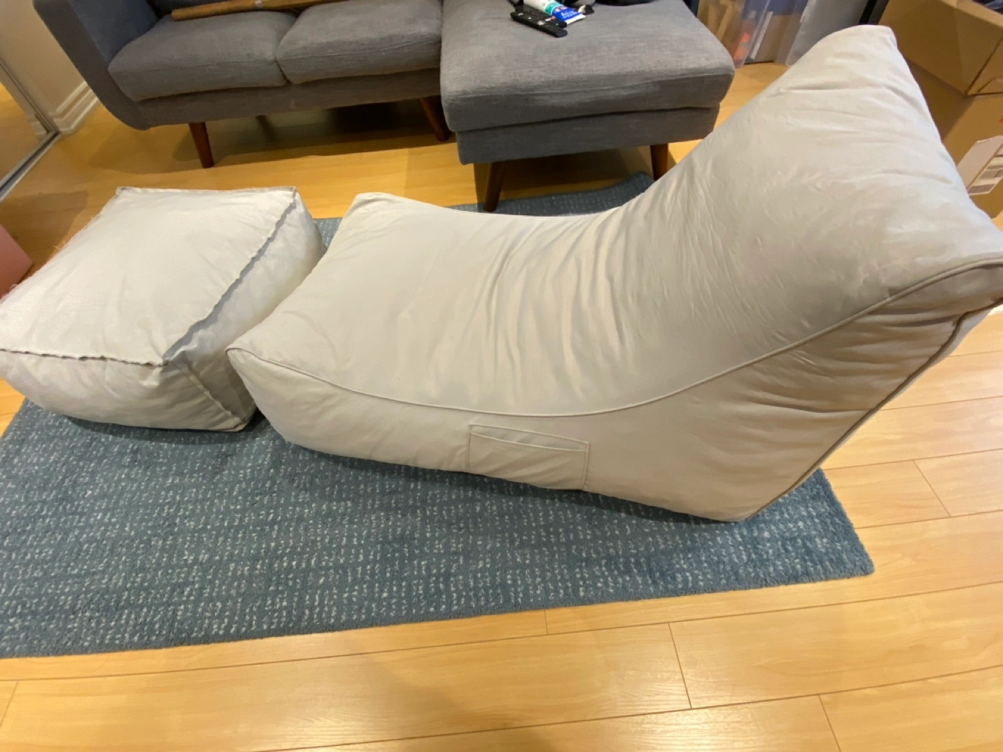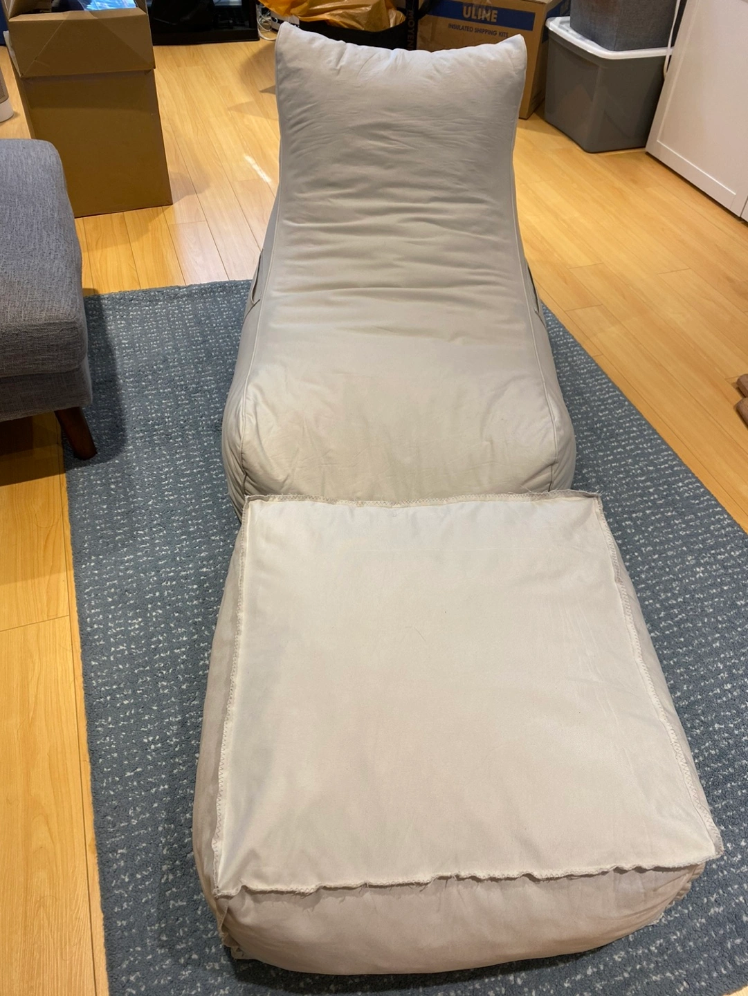 Foam-filled bean bag lounger and ottoman set. Light grey colour. In good condition. Original price set around $180 Barely used and in great condition ! Pickup by end of October. Leslie x Lawrence (near Shops at Donmills)