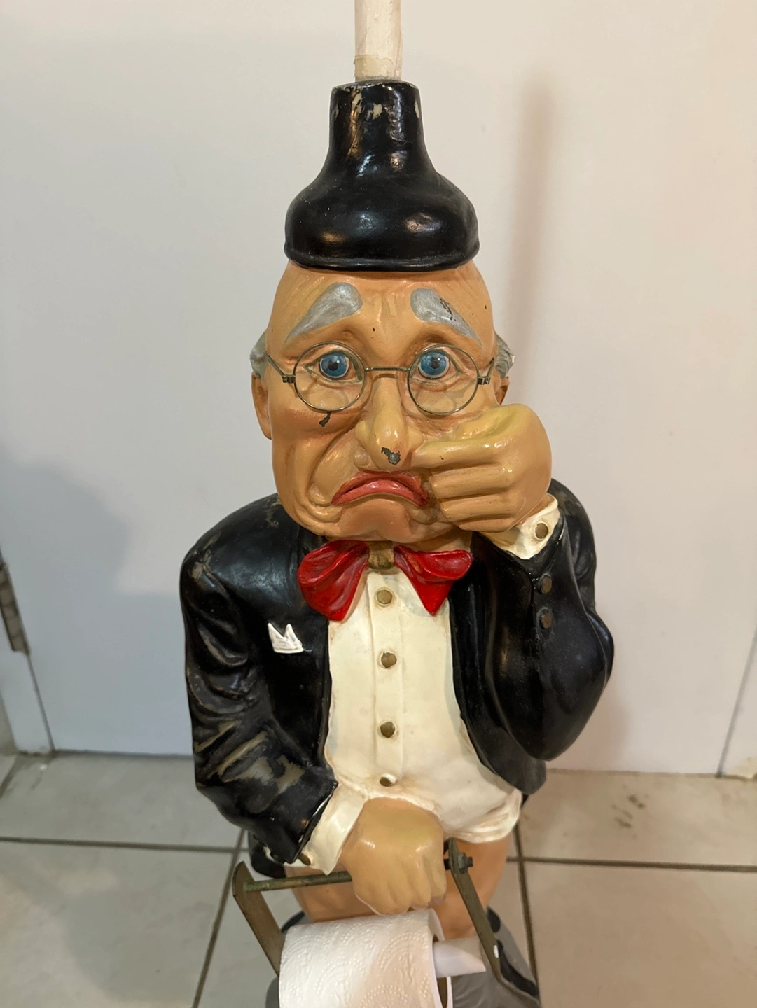 31" butler + 11" plunger on head makes it 42" tall. Toilet Paper Holder Rare Novelty Item. Funny. Condition shown in the images