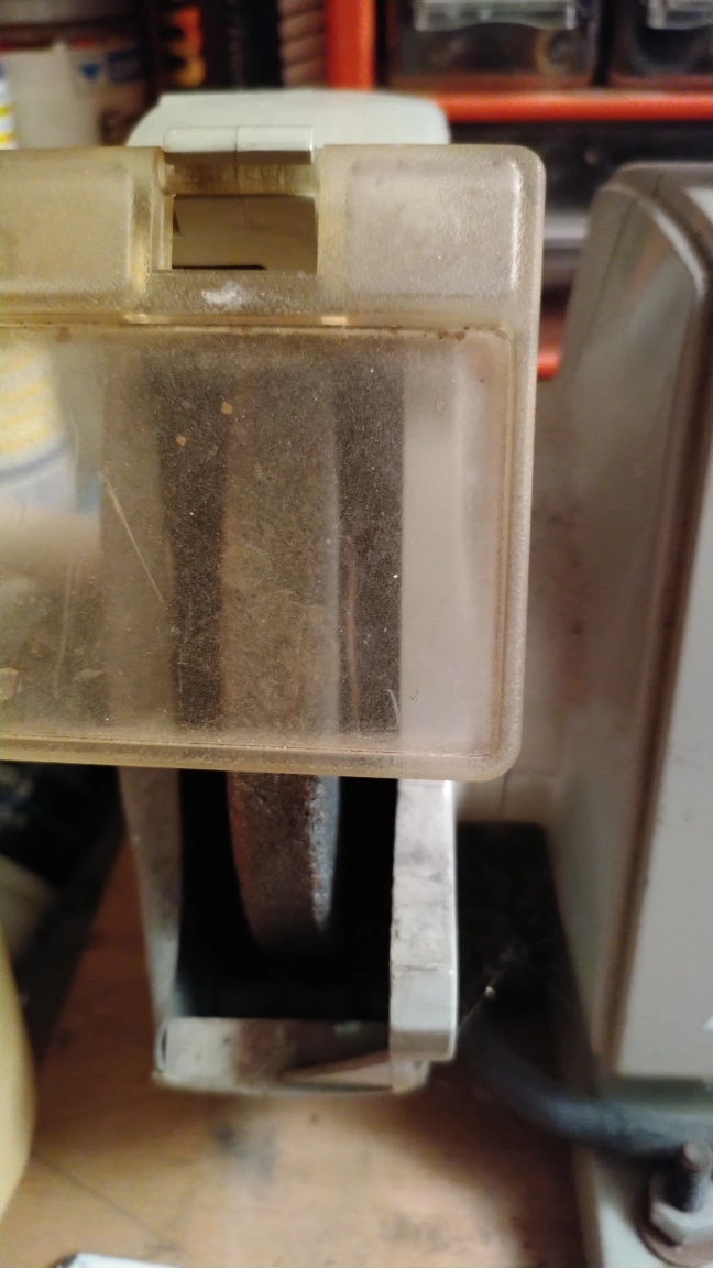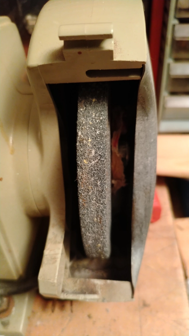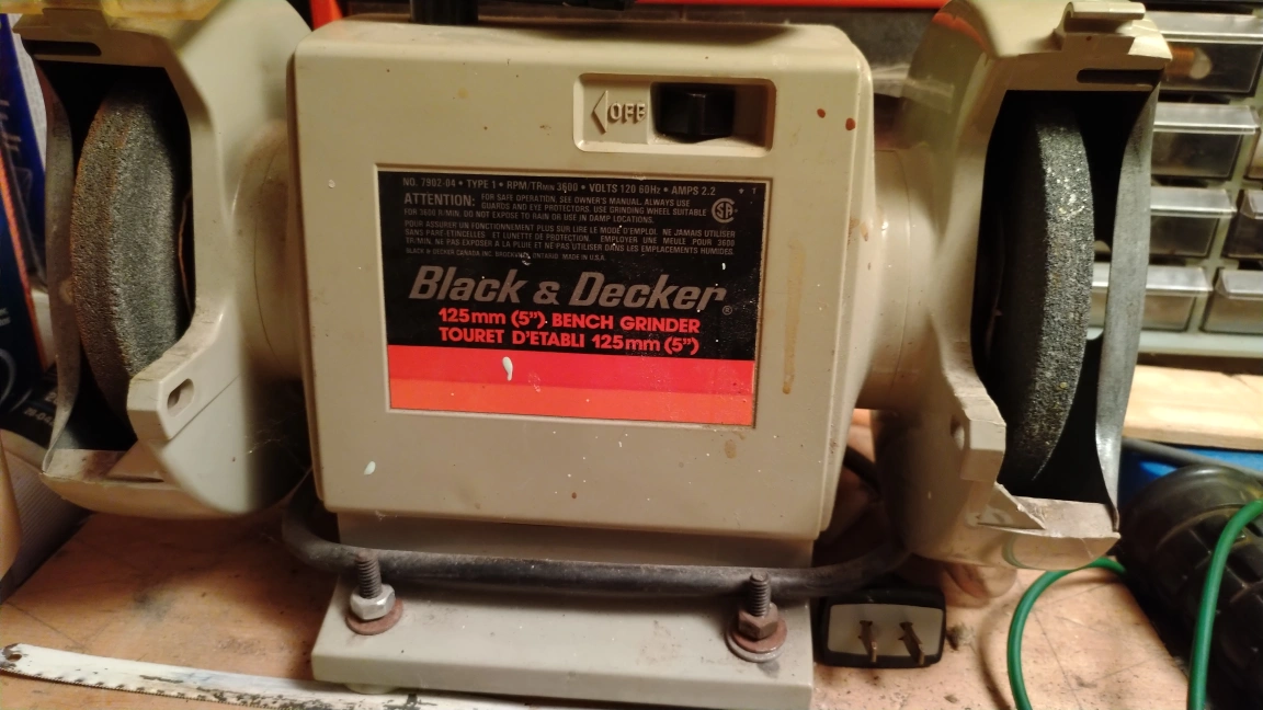 Bench grinder with two grinding wheels. Comes with a safety guard. it's a 5-im