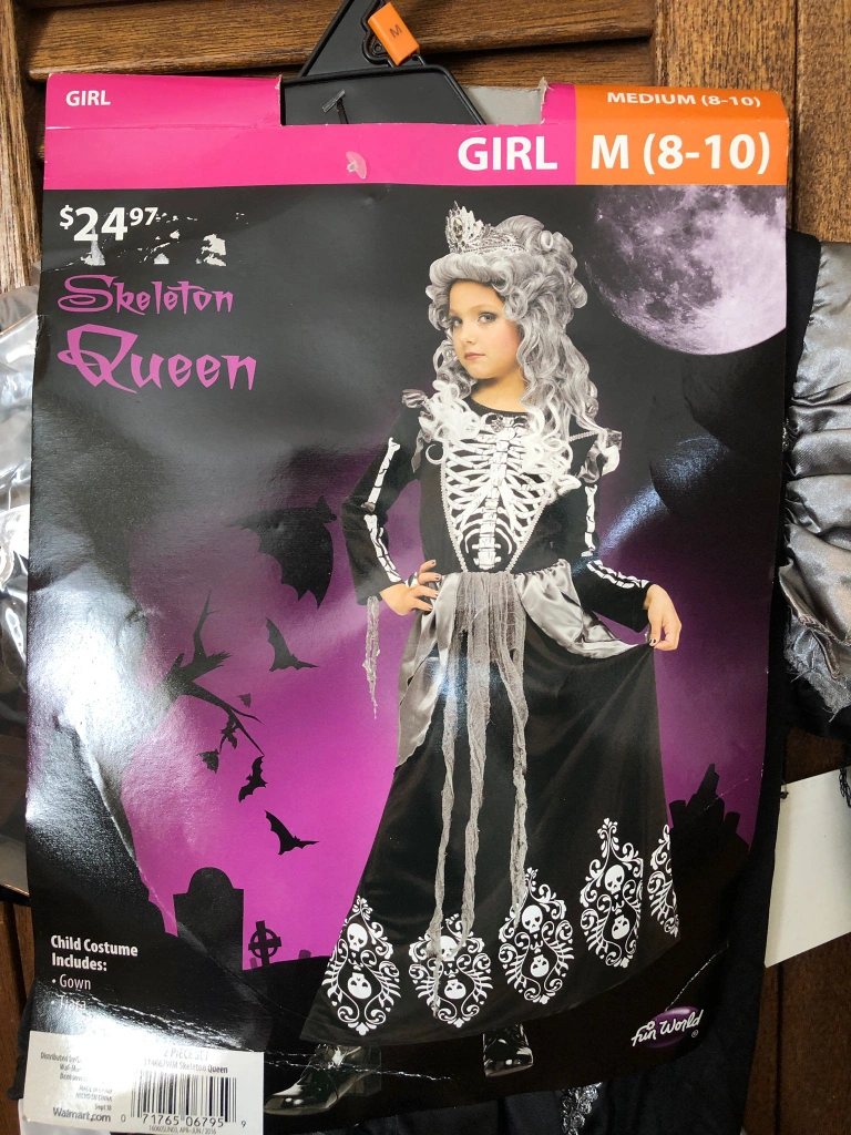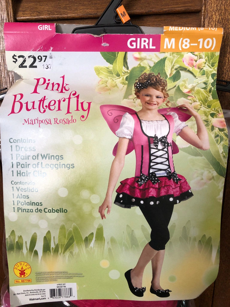 Three girls costumes. Pink Butterfly, Skeleton Queen, and Little Lion. Size Medium (8-10).