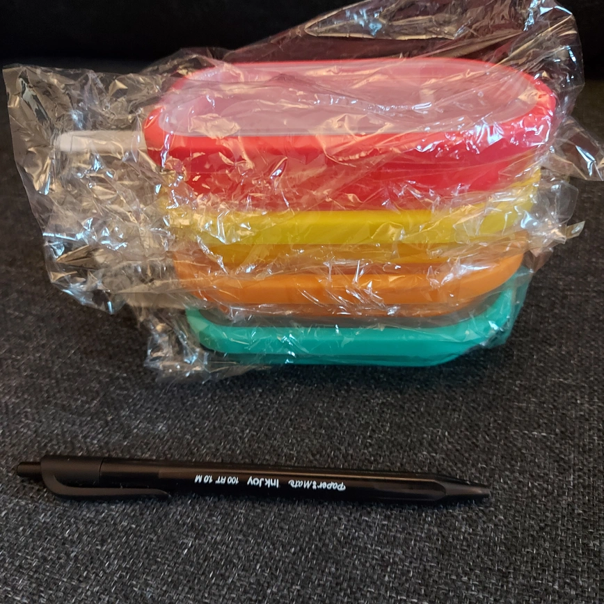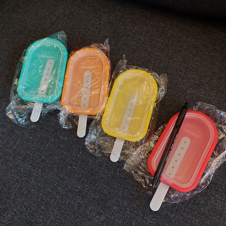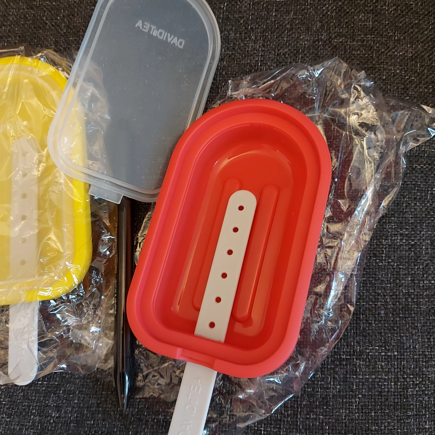 Set of four silicone popsicle molds. Great for making homemade popsicles or frozen treats. Includes one each of red, orange, yellow, and teal. Never used, just been sitting in storage forever. Can stack on top of each other.