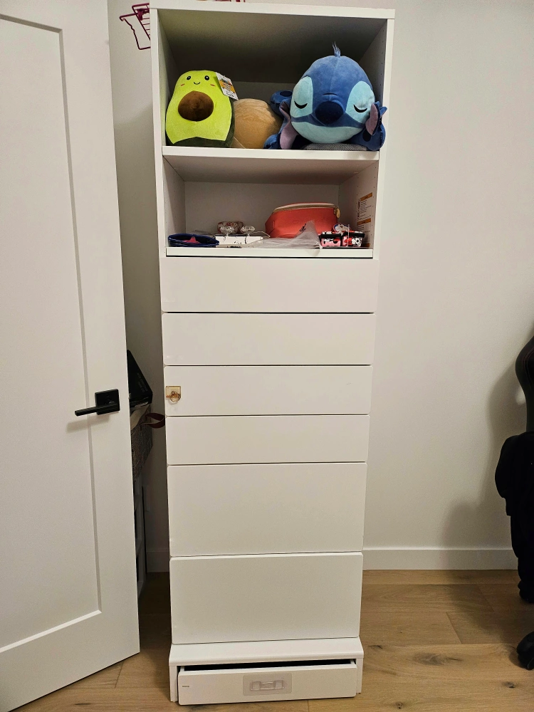 White 6-drawer chest. Good condition. super heavy you will need 2 people to remove this from my house and to be strong enough to bring down stairs. I love this dresser but I must sell everything. because of a situation... This is such a beautiful dresser.Not only can you put clothes in it , but you can display anything that you care about on the shelf's or a purse please check out my other ads.