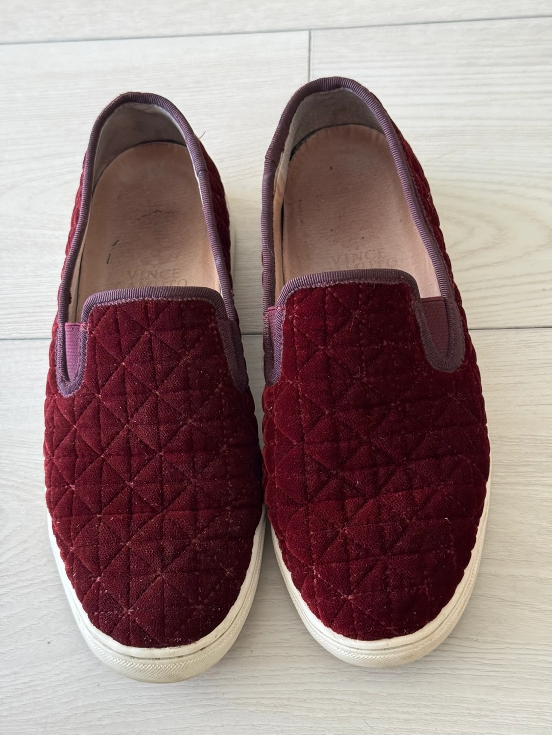 Vince Camuto maroon suede slip-ons wmns size 6 Soft and comfy slip-ons from Vince Camuto! Perfect for fall. In good overall condition, just needs a bit of a clean. Price is firm, cash only please. Pickup downtown Toronto/Jarvis & Gerrard/Yonge & Dundas or we can arrange to meet along TTC line 1.