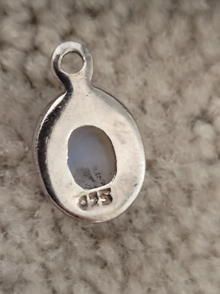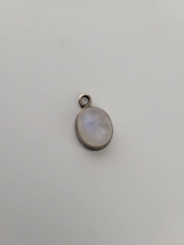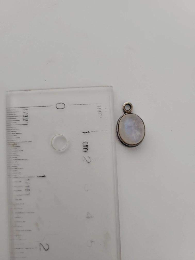 Oval moonstone pendant charm. Silver stamped .925. Approximately 1.5 cm long. Perfect for a necklace or bracelet.