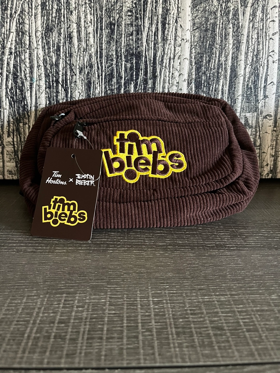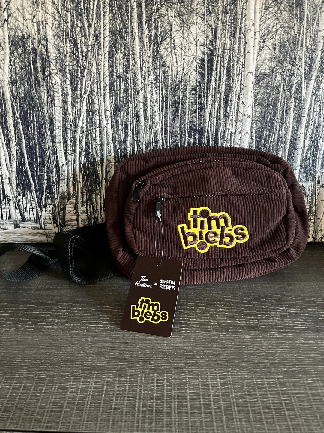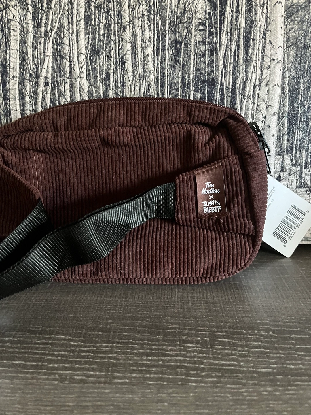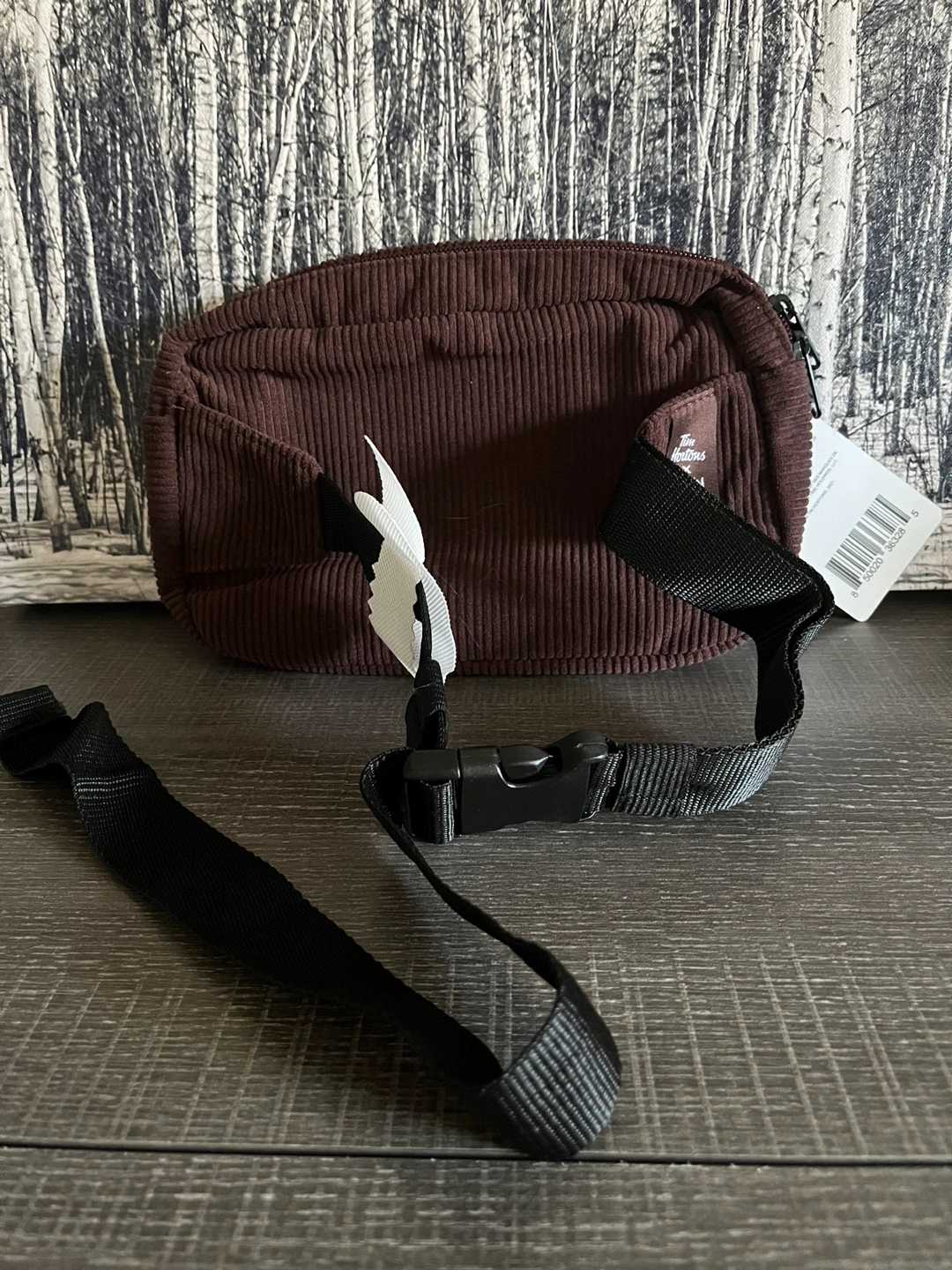Brand New Brown corduroy fanny pack. Features a black adjustable strap and a zippered closure. Brand logo on the front.