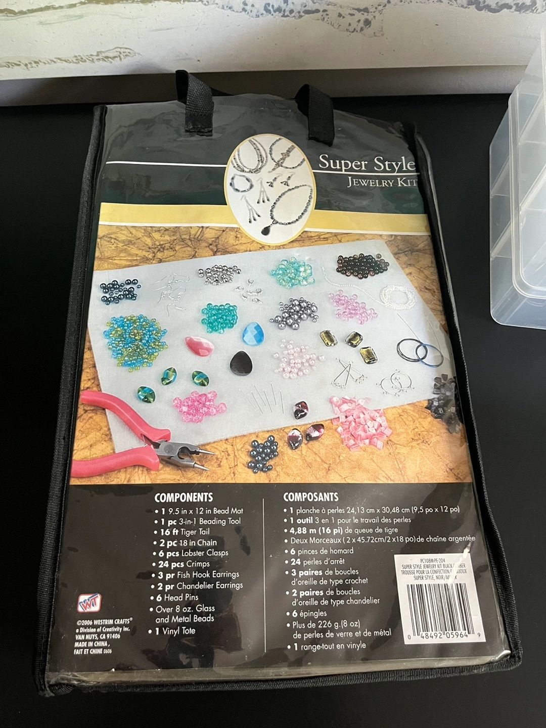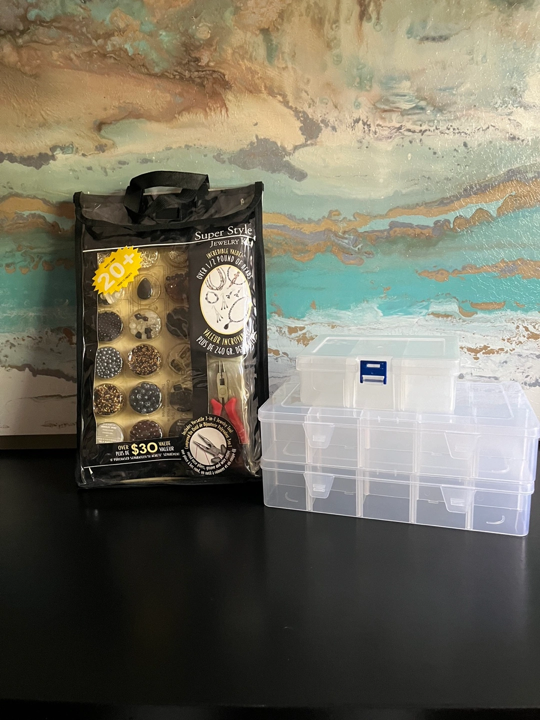 Jewelry making kit with beads, tools, and 3 plastic storage containers. Brand new. Price is for everything
