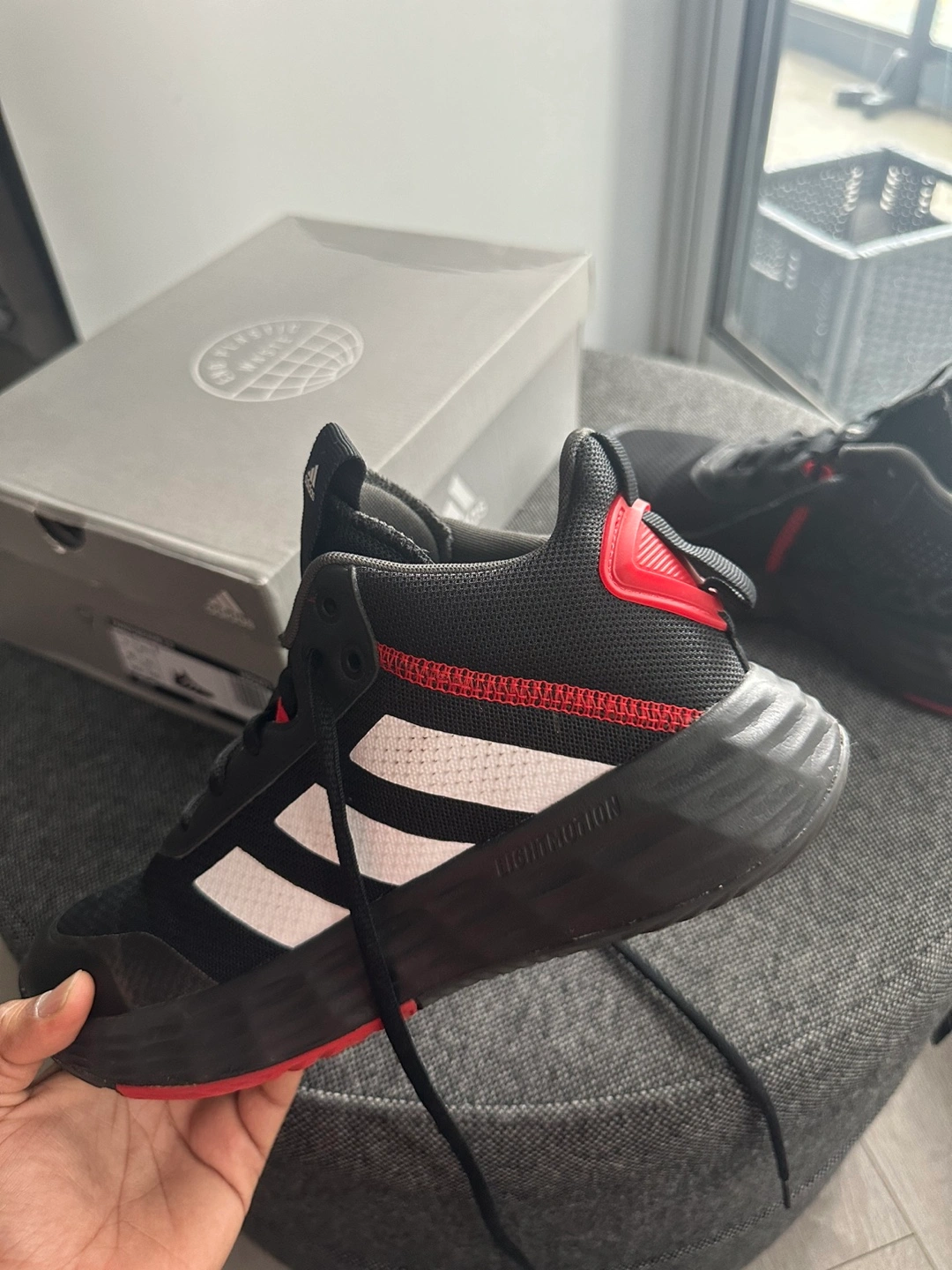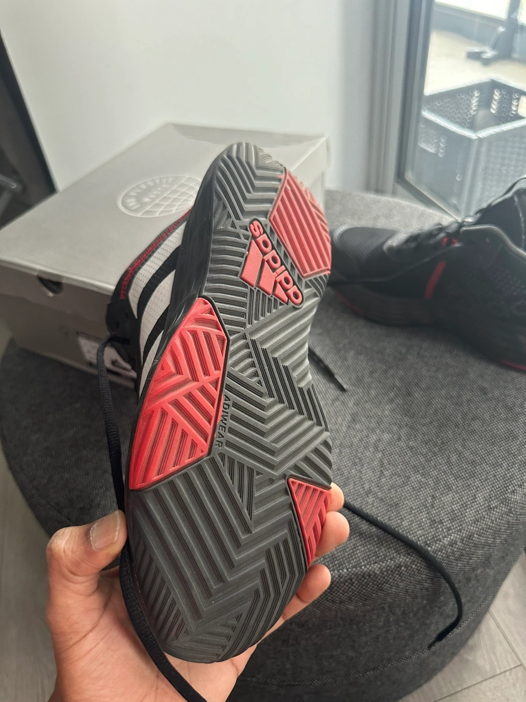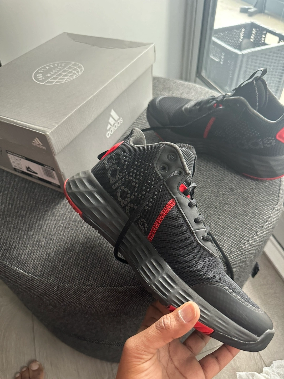 Black basketball shoes with red accents. Size 7 US. Barely used. It has some dust on it due to kept in storage. Once washed will be like new.