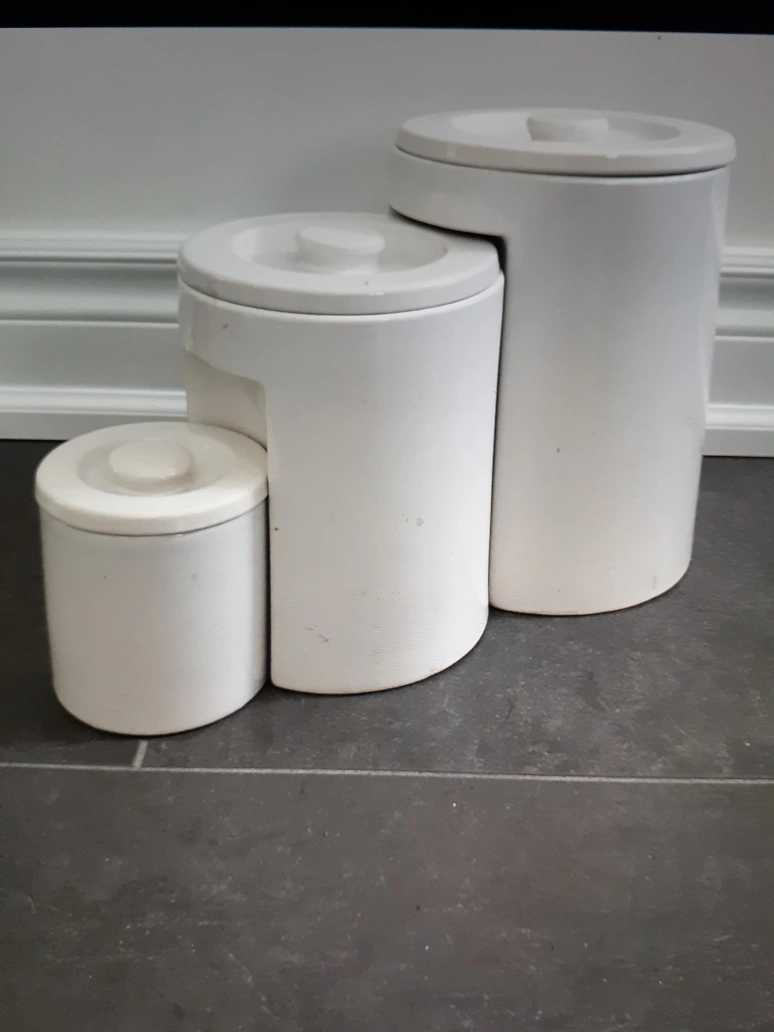 Set of three white ceramic canisters with lids. They are in excellent condition. Cash and Pickup at Willowdale Middle school or North York center station. PLEASE check distance before responding! If you tap I am interested to buy, send your availability and which location for pickup.