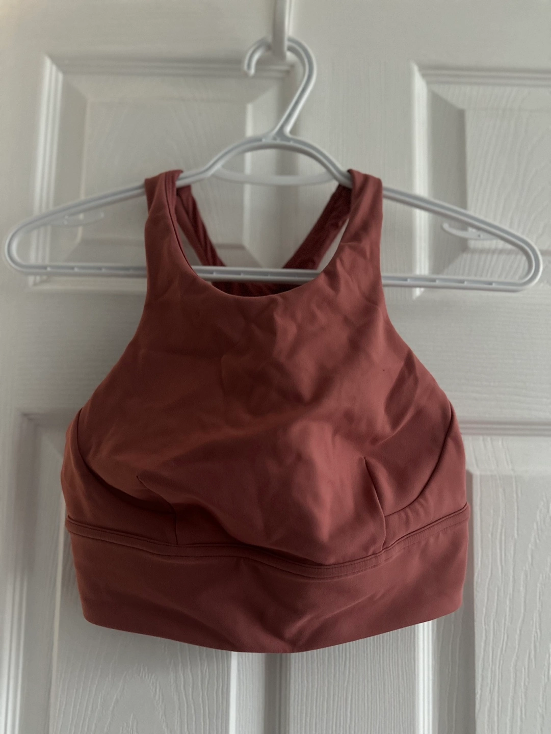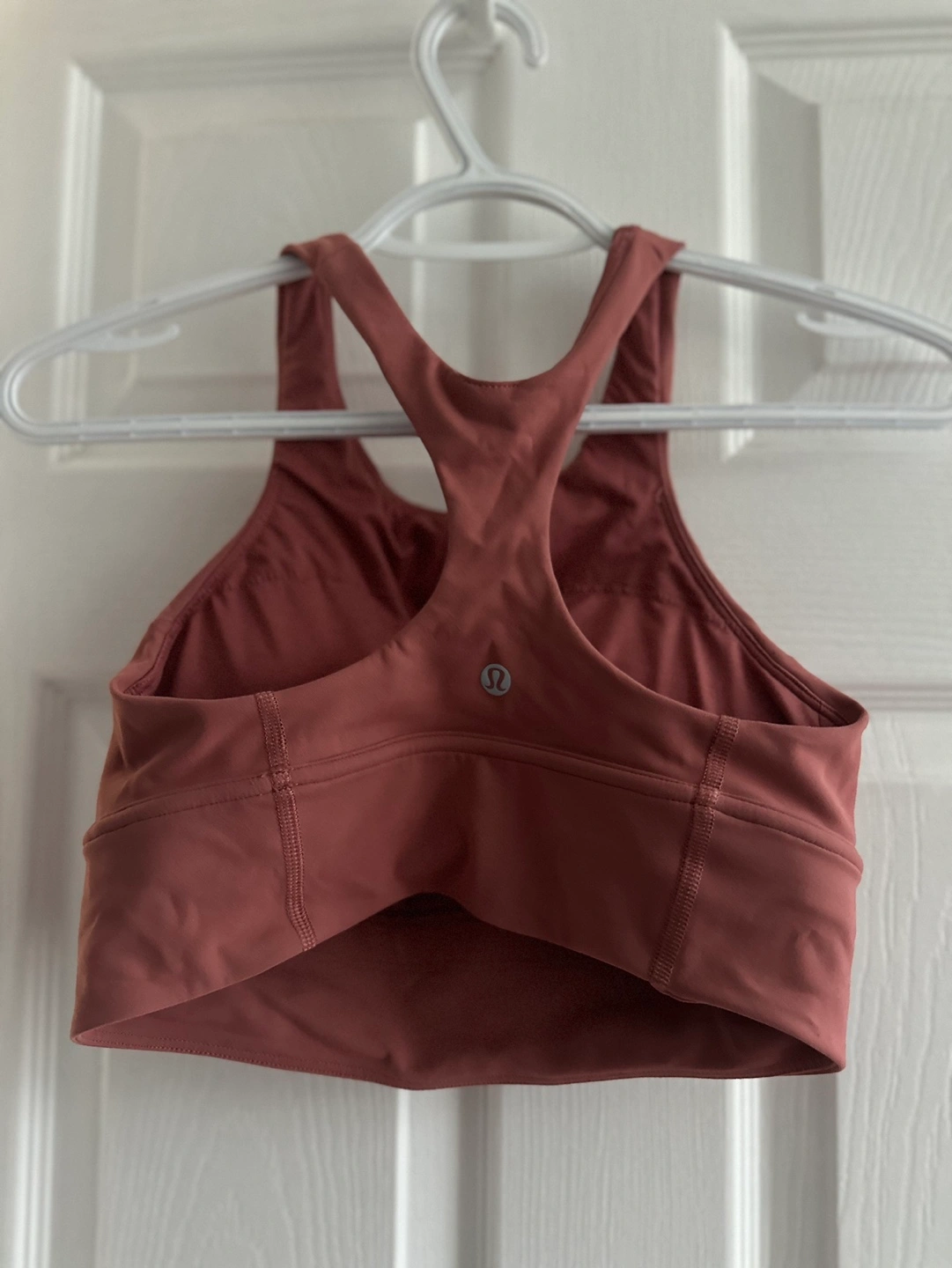 Like new, didn’t use it much. Lululemon Free To Be bra in a pink colour. Size 6.