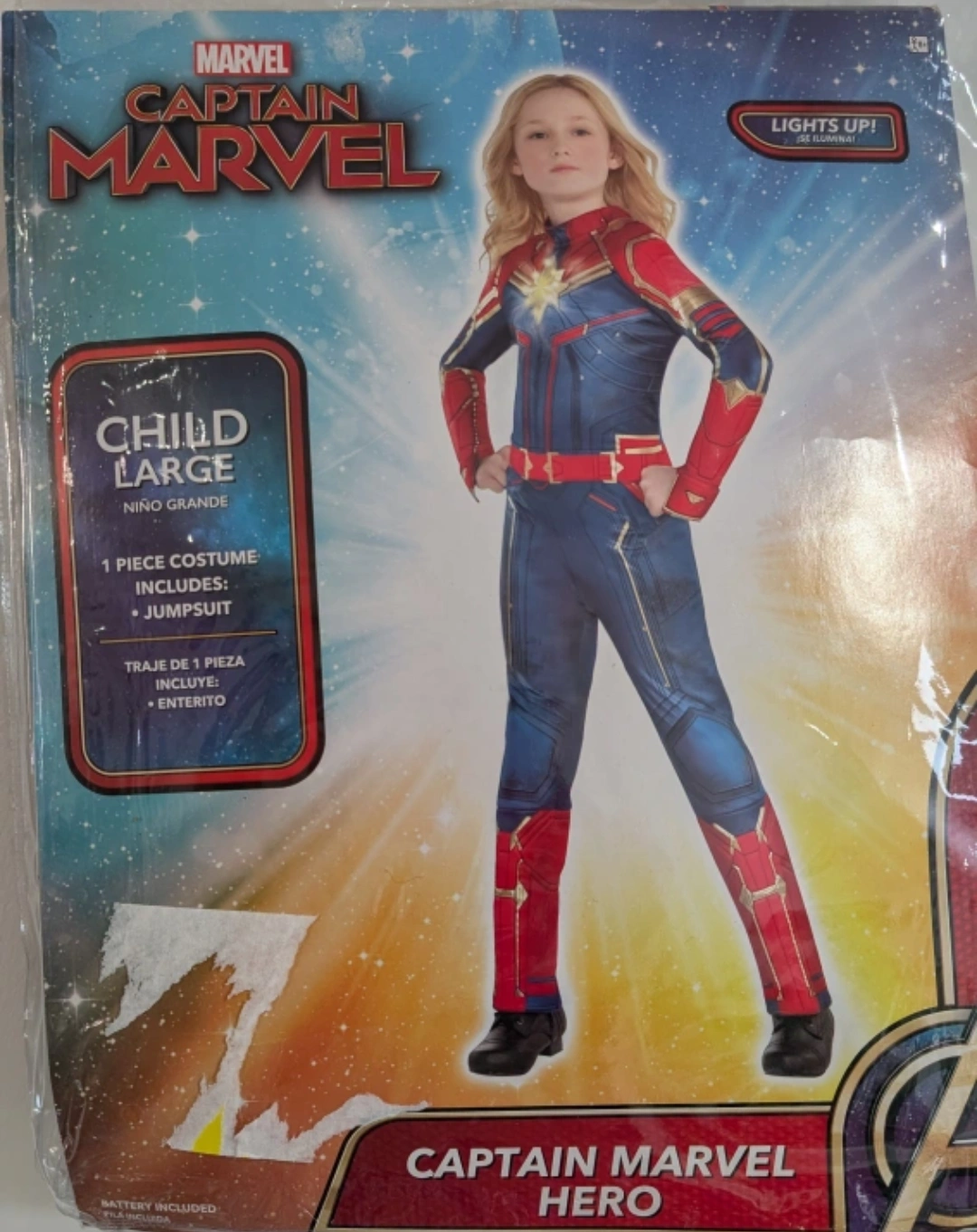 Captain Marvel-Carol Danvers Avengers light up costume youth large fits youth 12/14 New never used retails $40