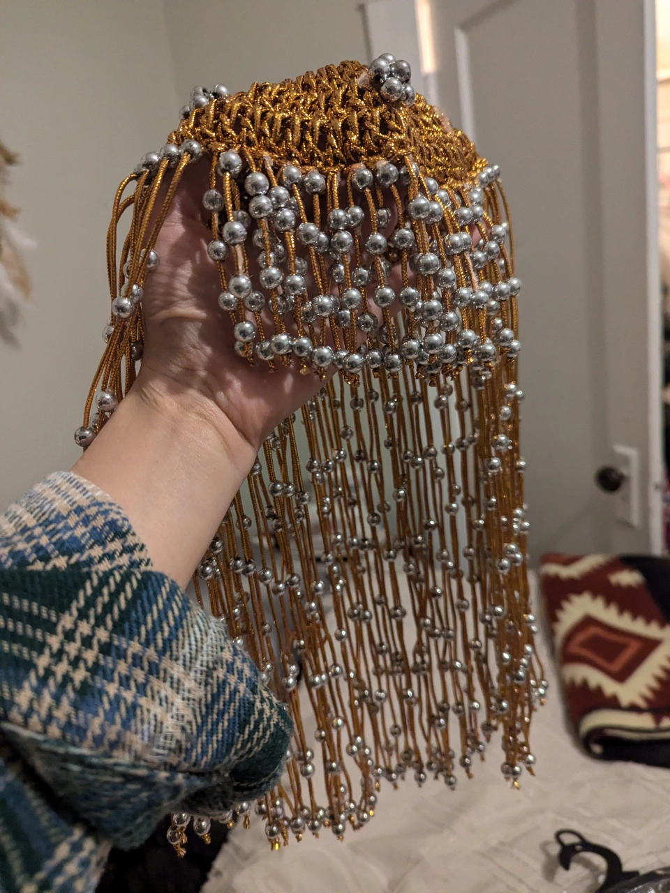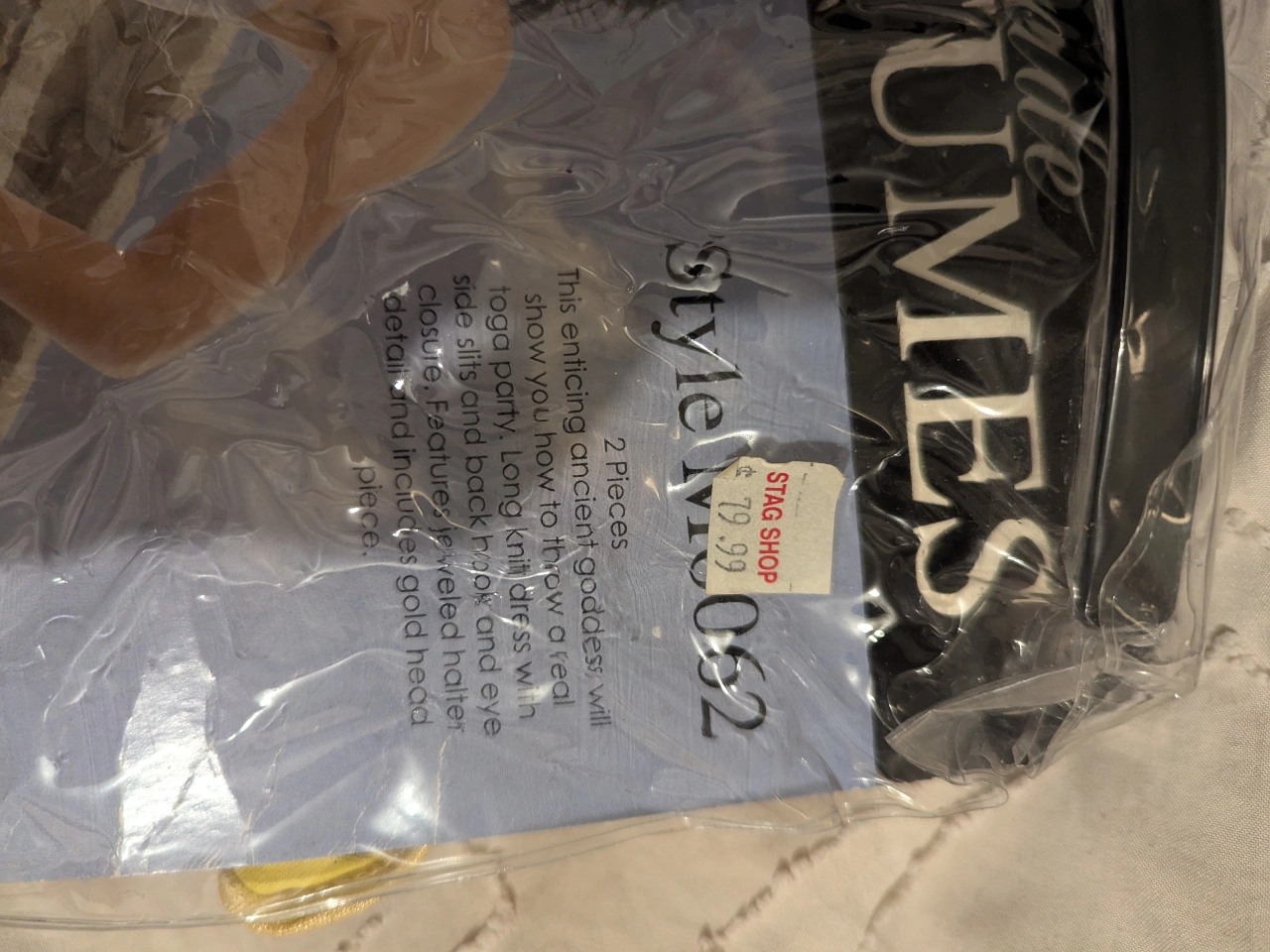 (Greek Goddess) White dress and head piece as shown on package, there's a stain on the white dress $10 size small Egyptian queen head piece separate $15