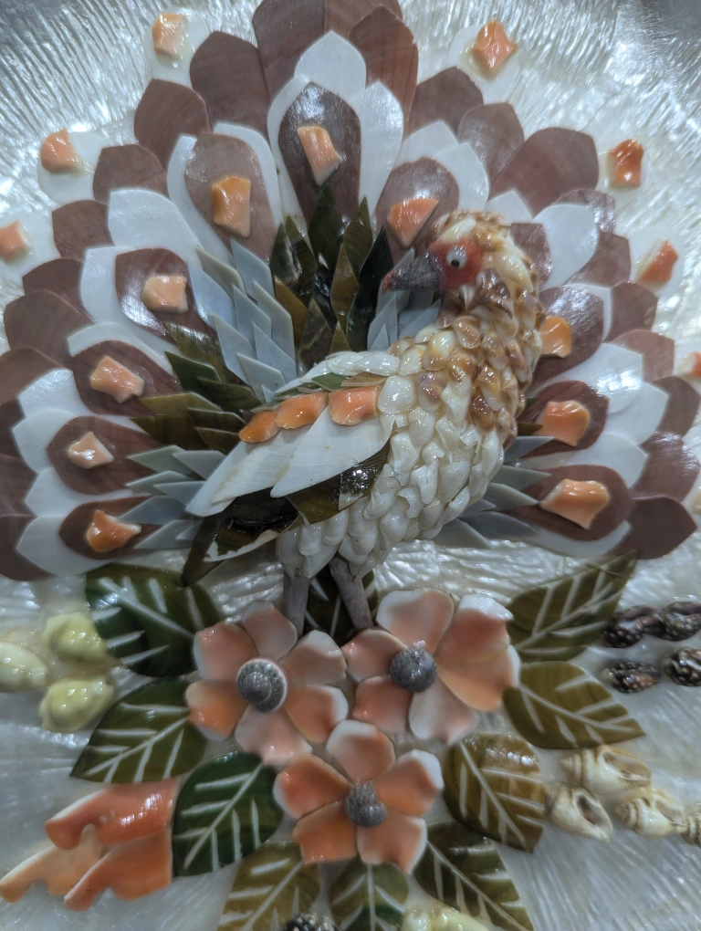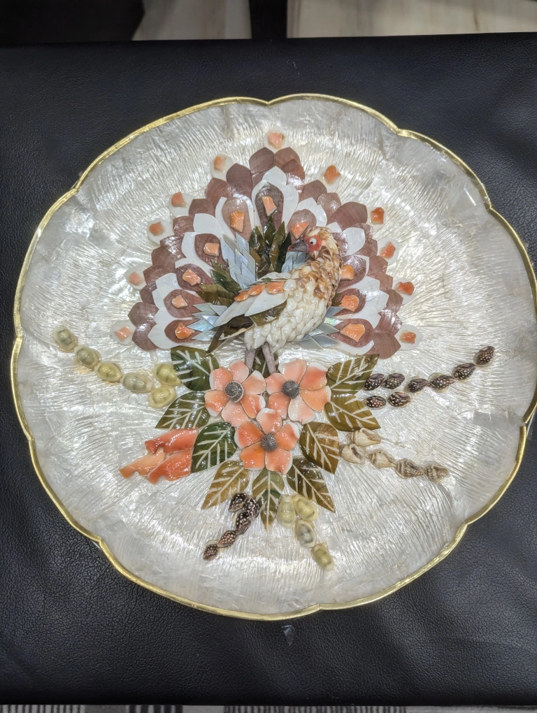 A stunning 11x11-inch Seashell Peacock Wall Decor, this piece is a perfect statement addition for any room.