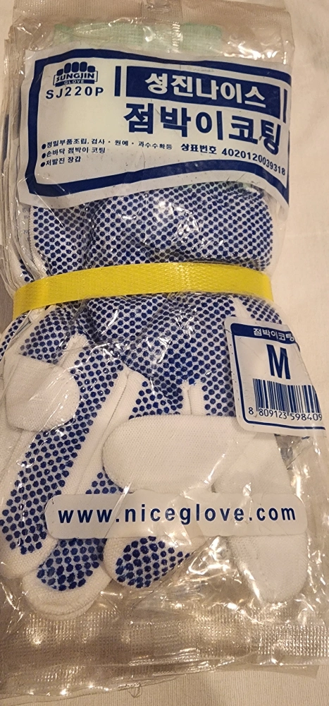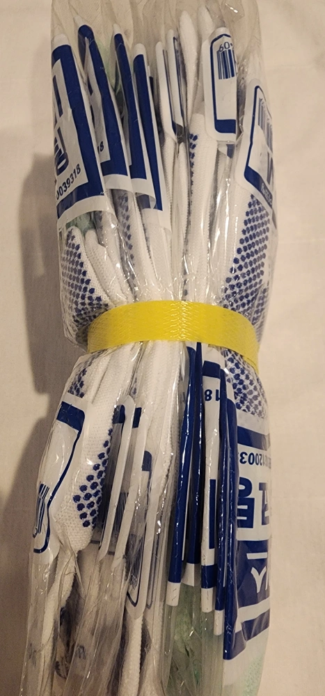 New Jungjin work gloves in size Medium, pack of 10. These are low-dust gloves made of stretchable cotton-spandex material, ideal for assembling precision parts, gardening, orchard work, and driving. They stretch to fit the hand comfortably and can be used by both men and women. pack of 10 for $ 20--->$15 Pick up- Moscrop Secondary School Parkinglot