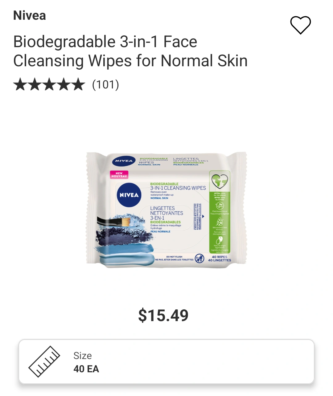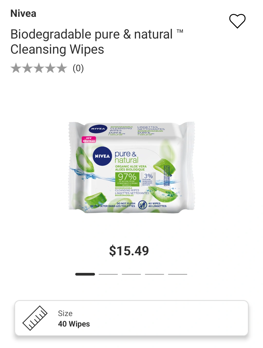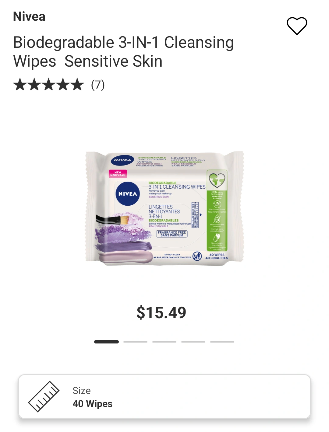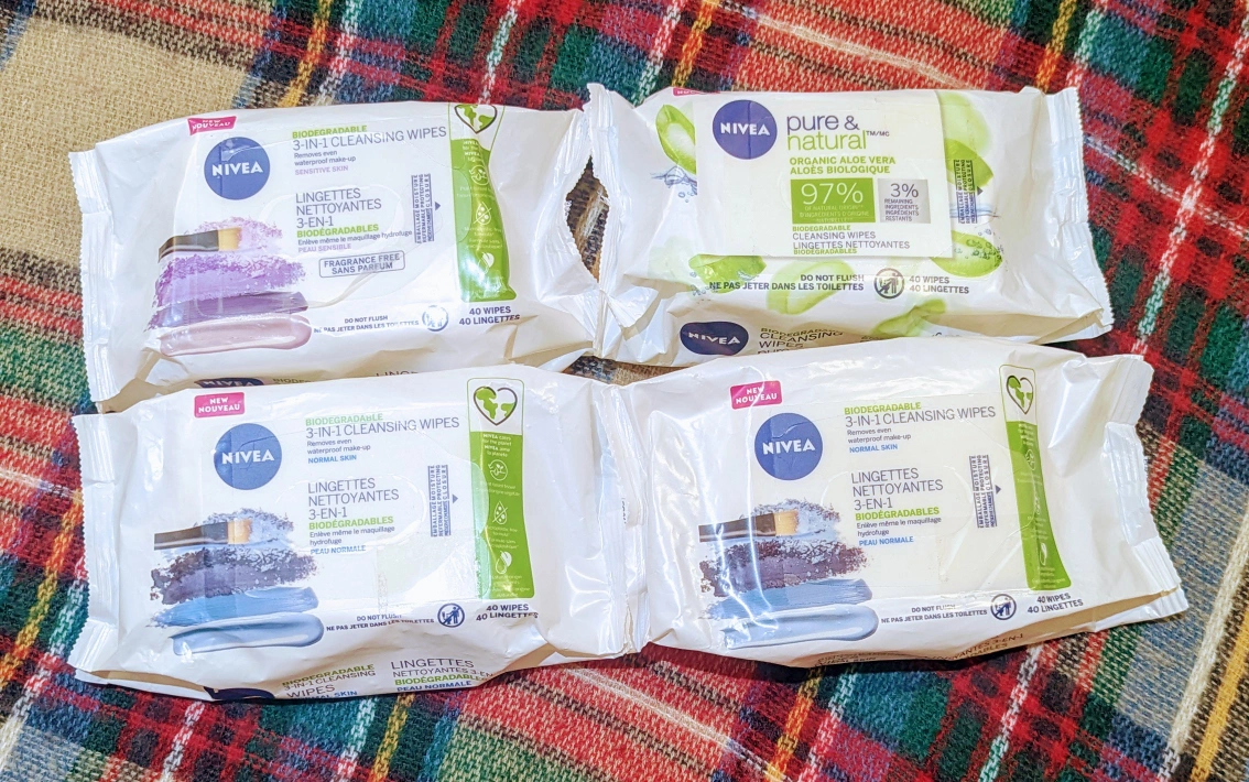 Brand new and sealed. Four packs of Nivea Biodegradable 3-in-1 Cleansing Wipes: 1 pack for sensitive skin 1 pack of organic and aloe vera 2 packs are for normal skin. There 40 wipes per pack.