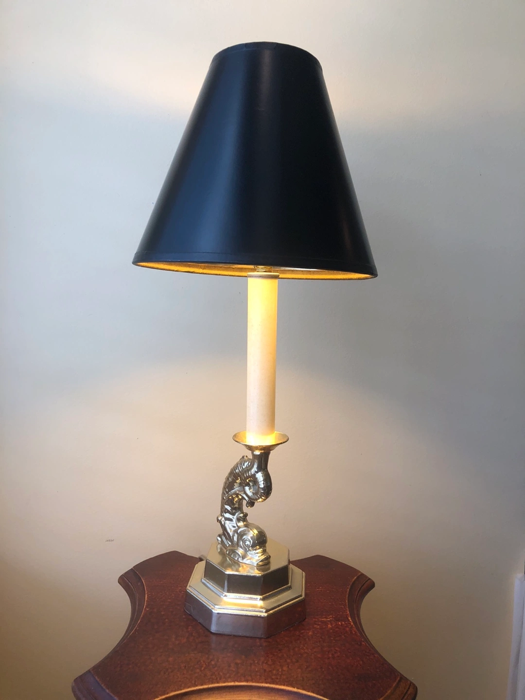 Beautiful little table lamp for ambient light. Classic design. Excellent condition. Black shade with gold interior. Felt bottom. From smoke-free/pet-free home. Yonge/Davisville pick up.