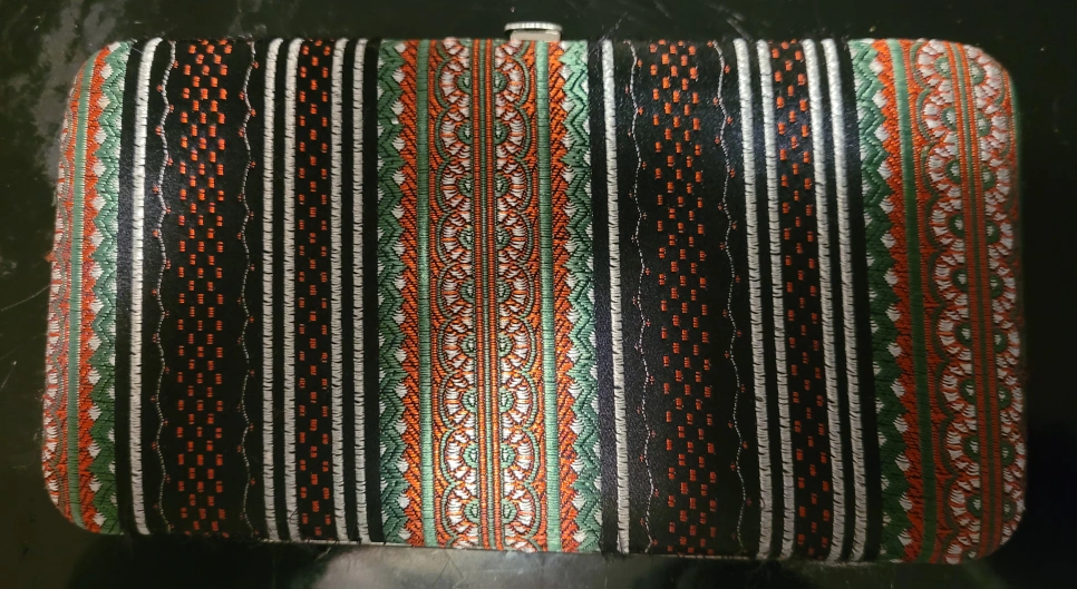 BRAND NEW!!! Black clutch/wallet with silver hardware. Embroidered with green, white, and orange thread. $5 Cash only. Pickup only.