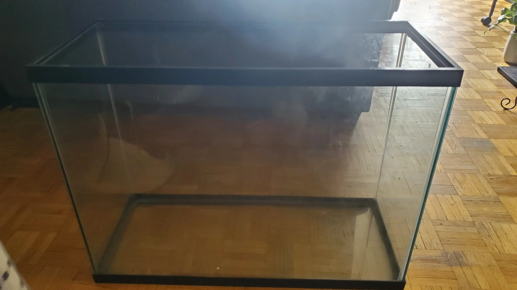 no low ball offers. price is firm Glass aquarium tank with black trim. no cracks 30 inches long 12 1/2 inches in width 23 inches in height 5mm in thickness
