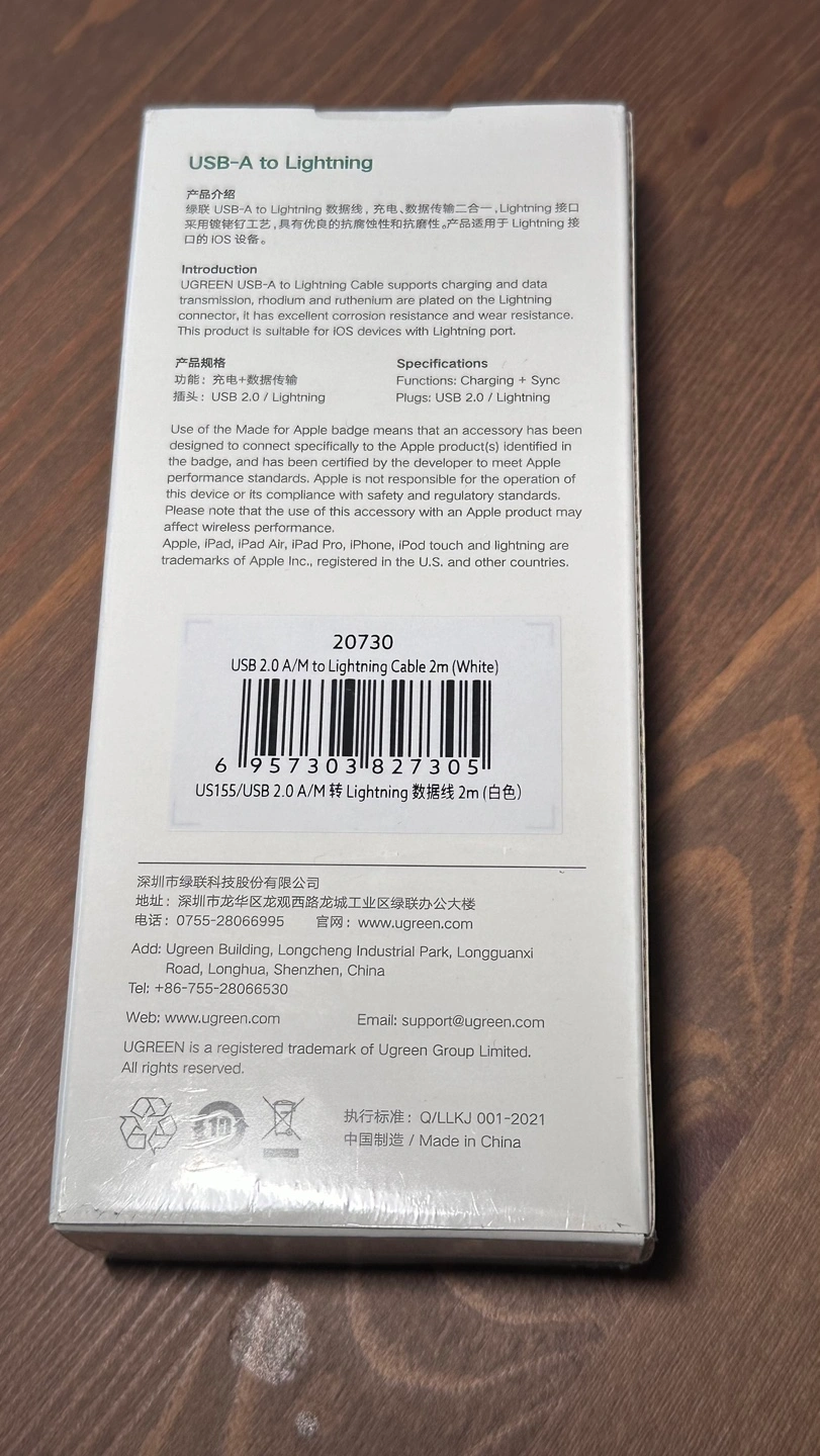 2m white cable. Made for iPhone, iPad, iPod.