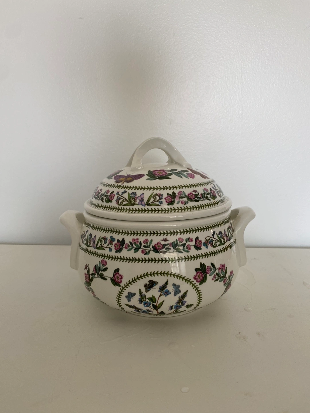 Portmeirion Covered Casserole: • Botanic Garden “Variations” Collection • 2 Qt Romantic Shape Round Casserole • Discontinued pattern • Collectible piece • Barely used • Excellent condition • Microwave Safe, Dishwasher Safe • 7" width x 7.25" height • No Chips, No Cracks, No Scratches • Made in England • Smoke free and pet free home Pick up ONLY in East End Toronto (Gerrard St East and Jones Ave) in Leslieville.