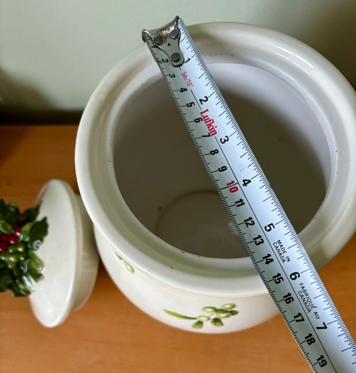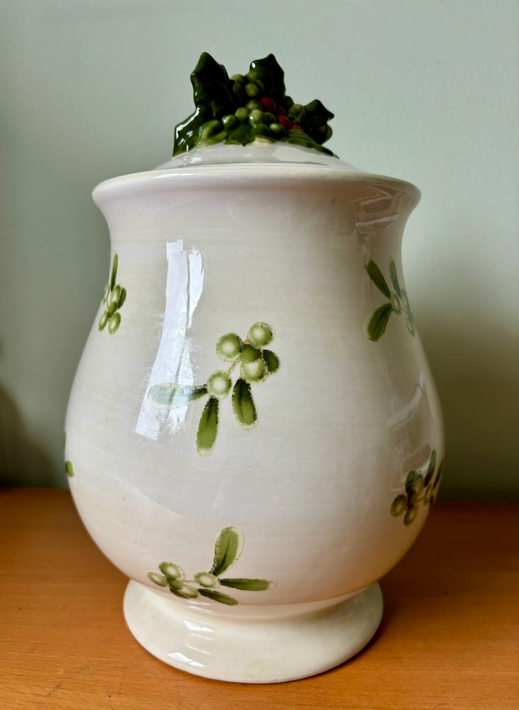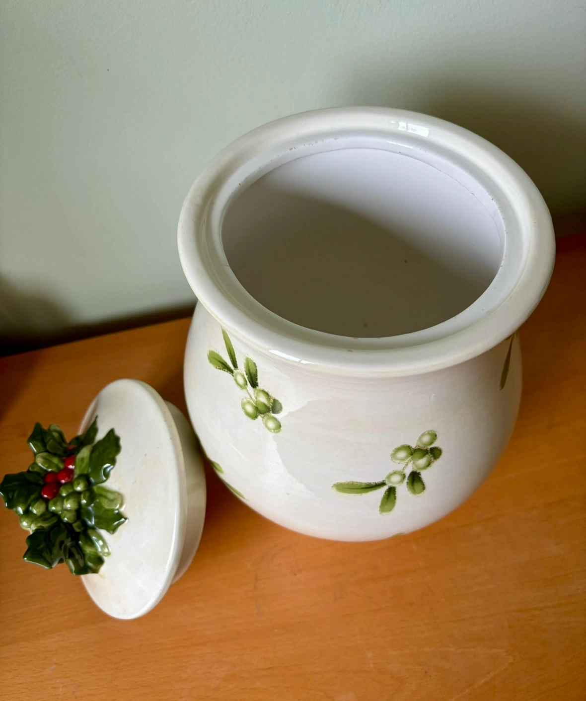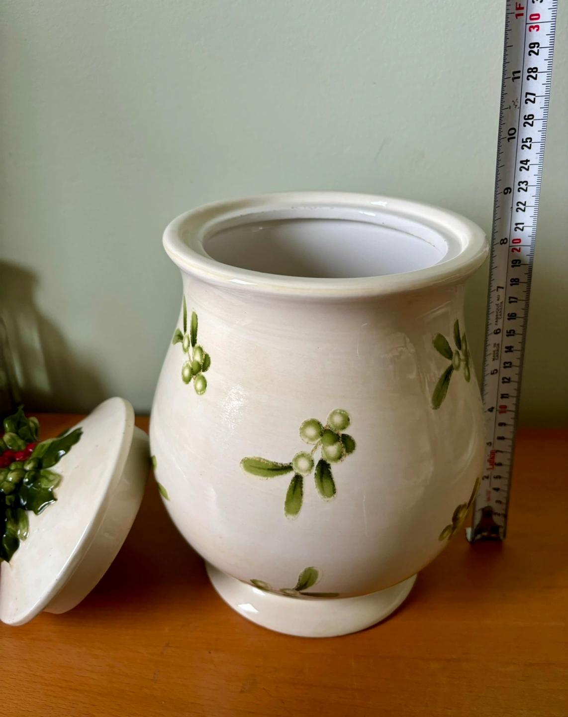 Large Ceramic cookie jar with a holly design. The lid has a 3D holly design, 8 1/2” tall without lid. Life @Home brand, it’s in very good condition. Also a pair of like new 4 1/2” tall ceramic holiday mugs (last pic) available at additional $3. Click on my name above to see my other listings and pickup locations.