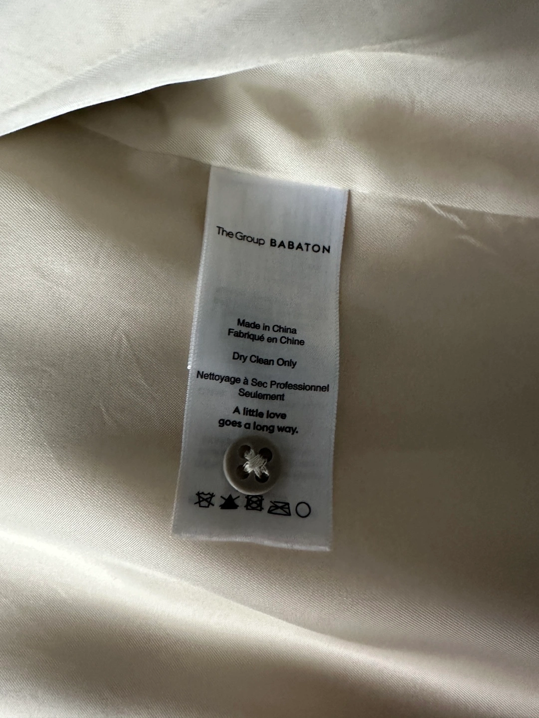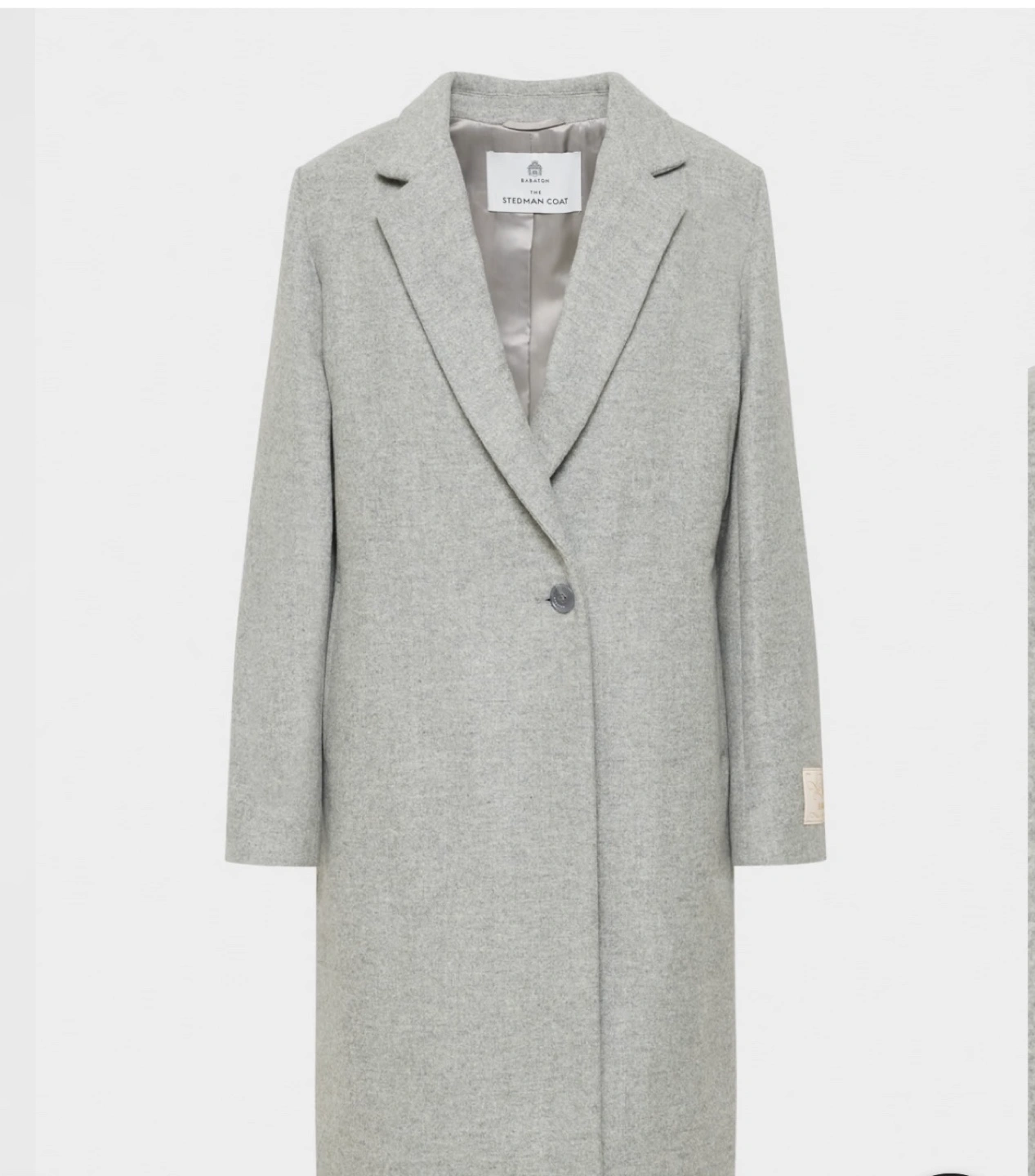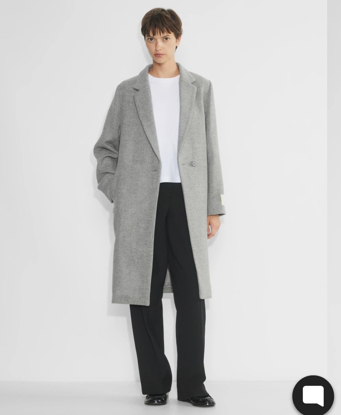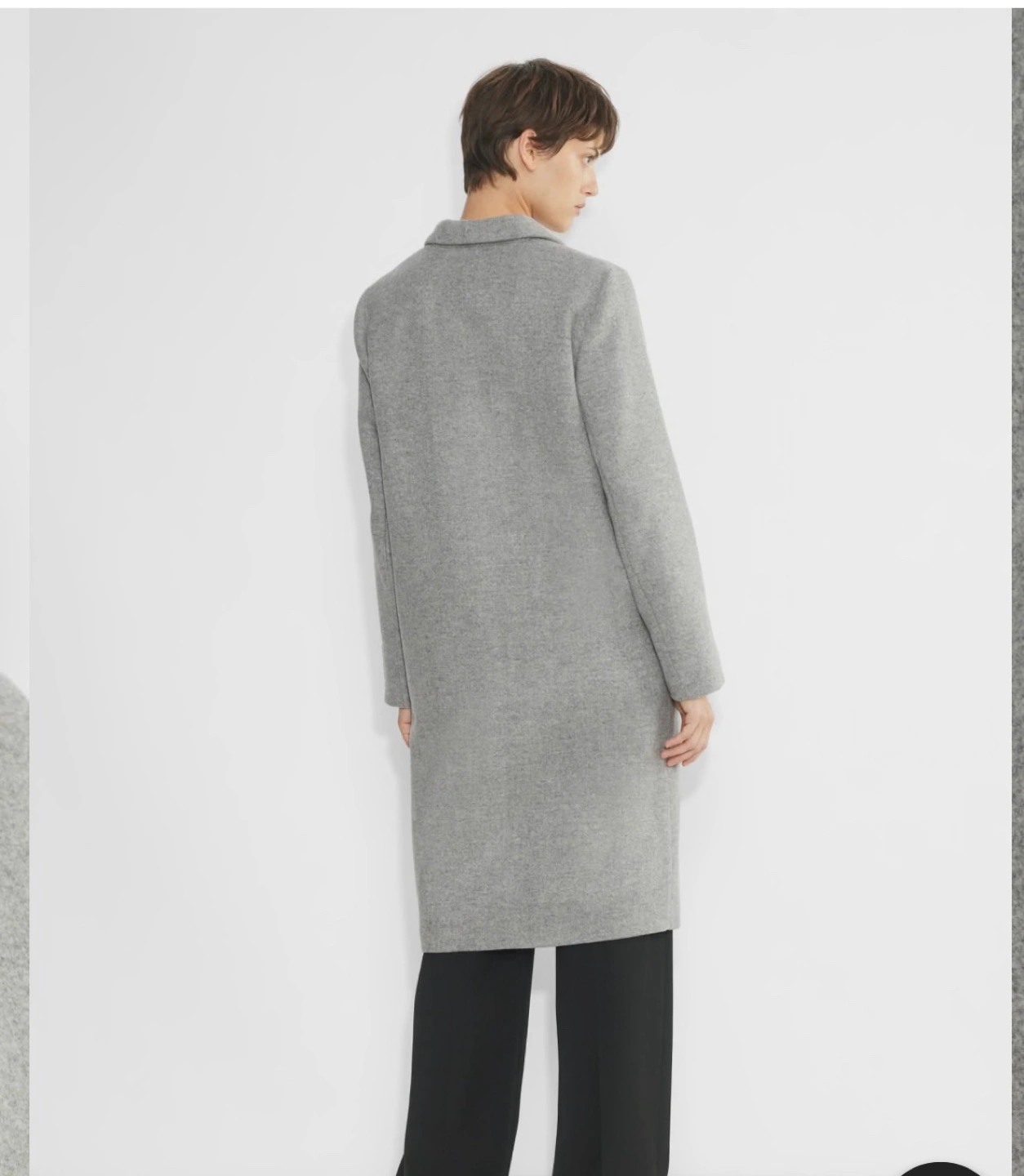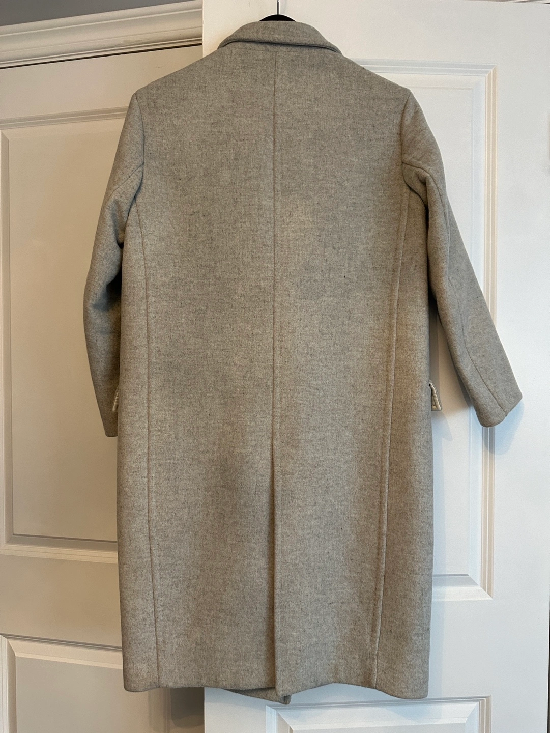 Excellent condition. 70% wool, 25% nylon, 5% cashmere Lining: Rayon Size small Colour: Heather light grey 2 front pockets with back slits