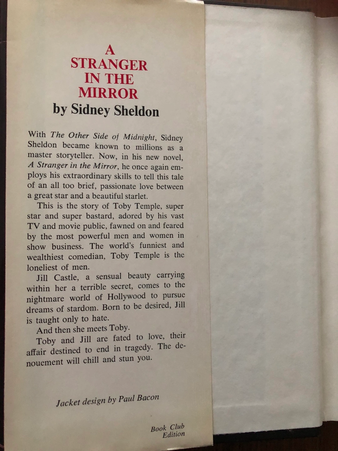 Hardcover book by Sidney Sheldon. Book Club Edition. Jacket design by Paul Bacon.