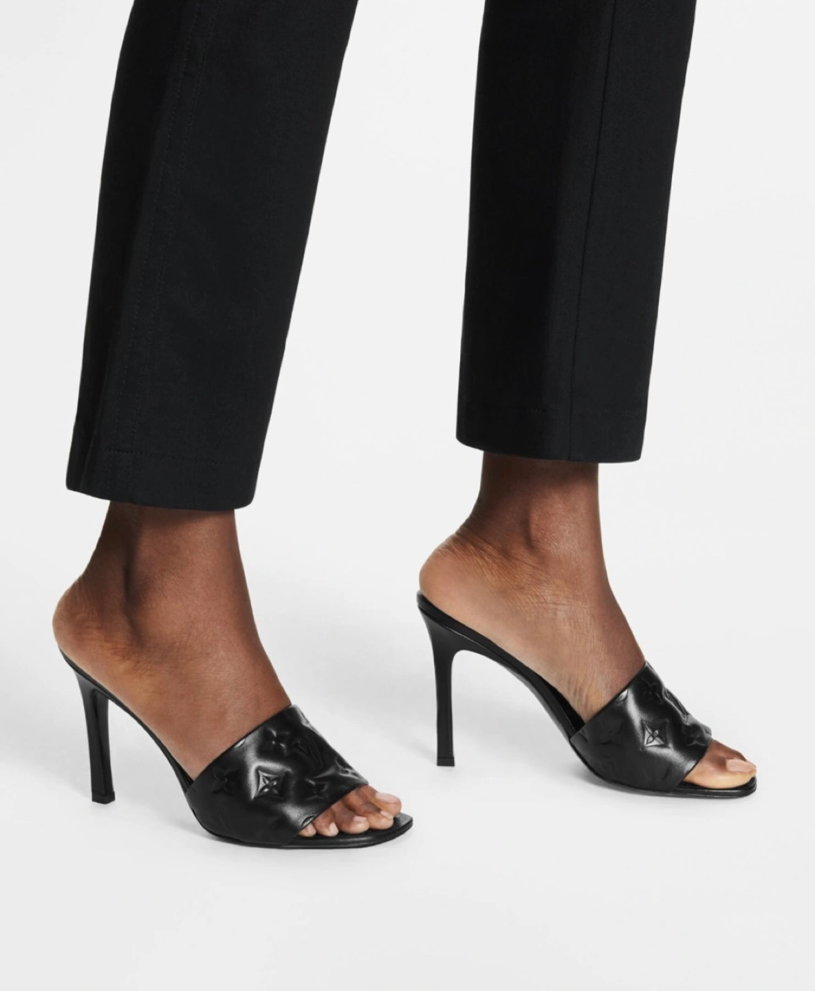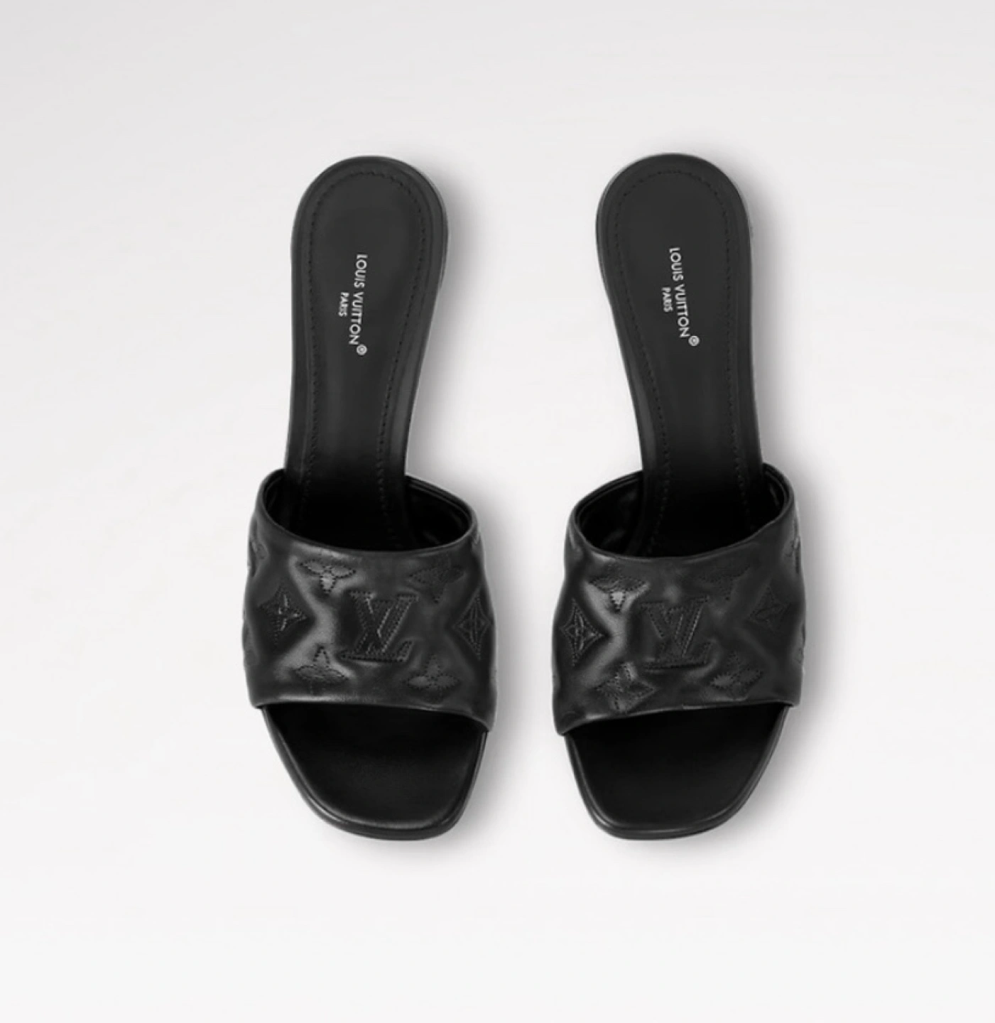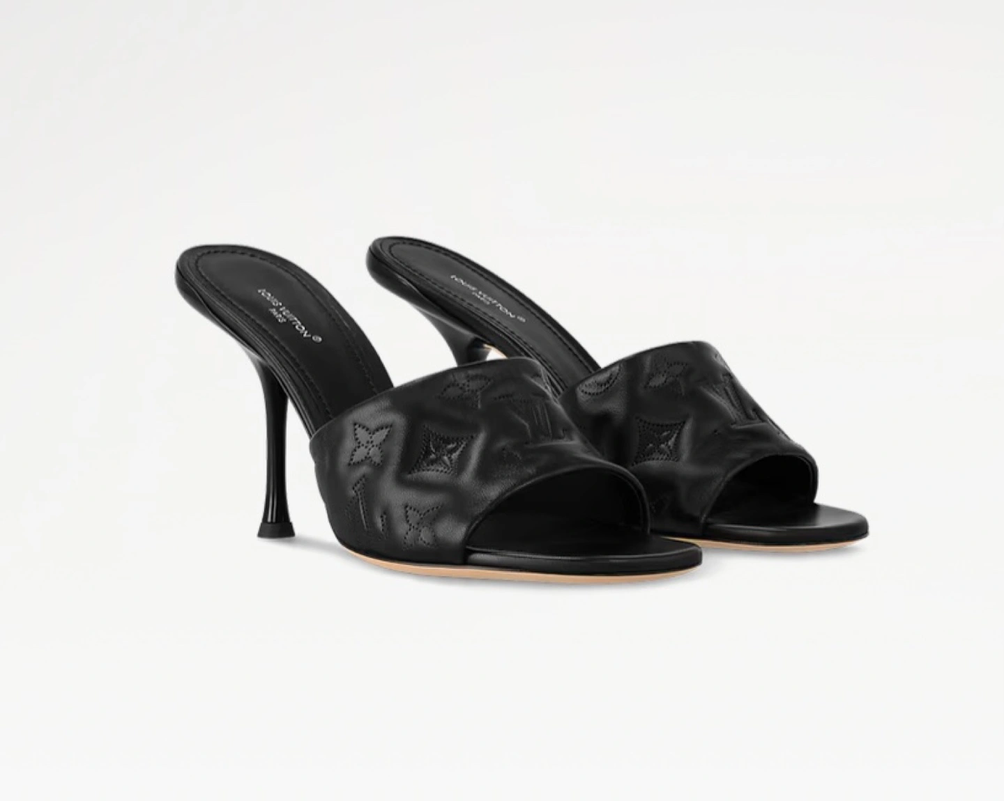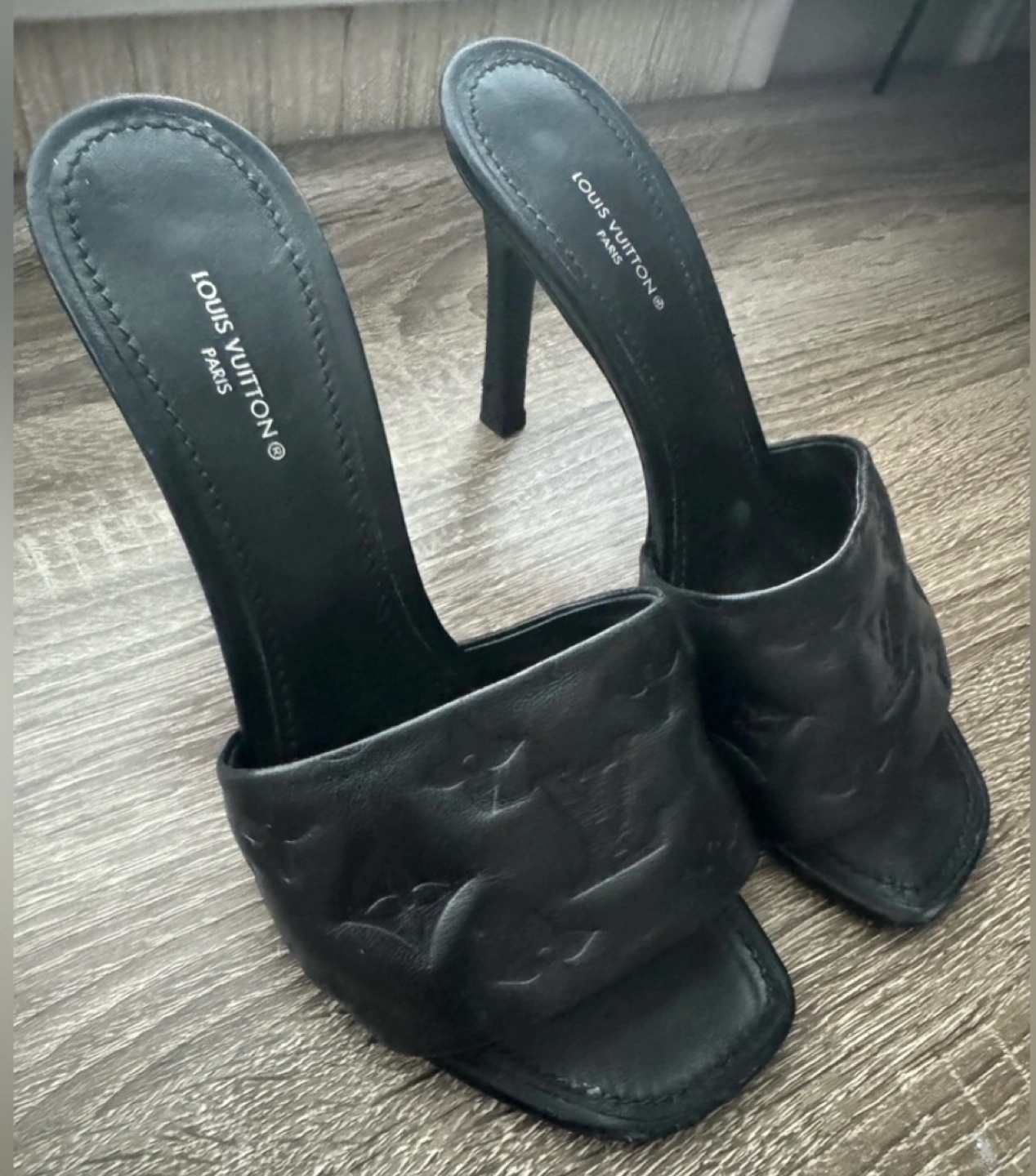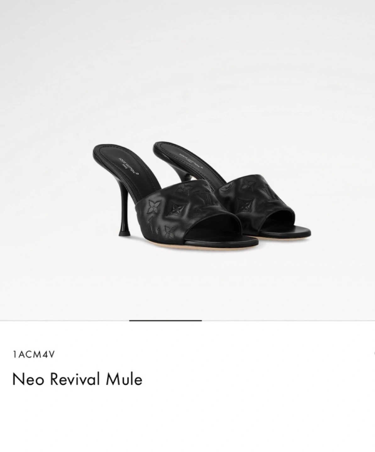 Louis Vuitton Revival Mules Sandals These beauties deserve a new home- great condition, a tew minor marks as they have been gently worn authentic LV heels. The leather is butter soft & beautiful! Size 37.5 or size 7 From the LV site: A stylish update of the emblematic Revival line, the Neo Revival mule is distinguished by its wide front strap in soft calf leather, which is embellished with Monogram perforations to create a puffy effect. This elegant model comes on a high heel with a graceful, curved profile. It is finished with a fine leather outsole. Black Perforated calf leather Leather outsole 9 cm / 3.5-inch heel Made in Italy