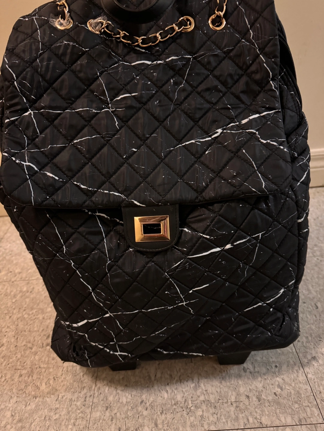 Arline approved 21" Never used for travelling Excellent condition Wheels Extended handle Side pockets Zipper and flap buckle