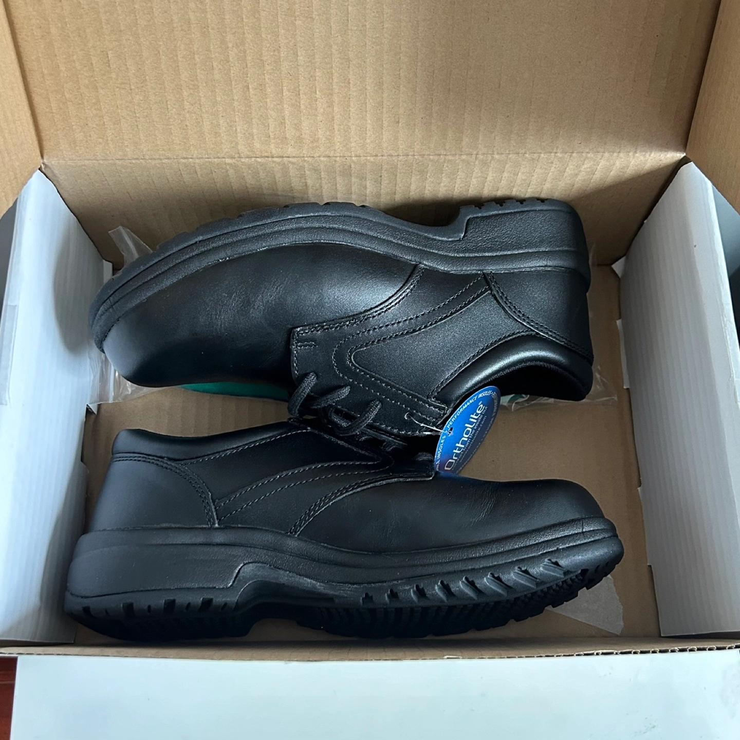 Black unisex lace-up work shoes in size 6M in men’s sizing, or 8 for women. Slip resistant with special Ortholite comfort insoles and an extra pair of insoles. Brand new in box! Pickup at Burnhamthorpe and East Mall or can arrange to meet at Kipling station.