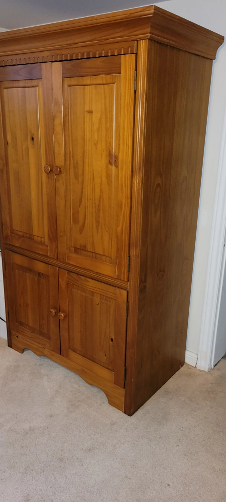 Idomo closet/cabinet It can be disassembled easily when disassembled, the biggest part is 22.5 inches 22.5 X 39.5 X 71.5 inches. Pine wood and is very light weight.