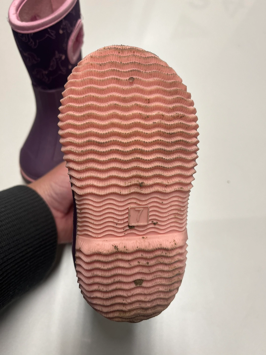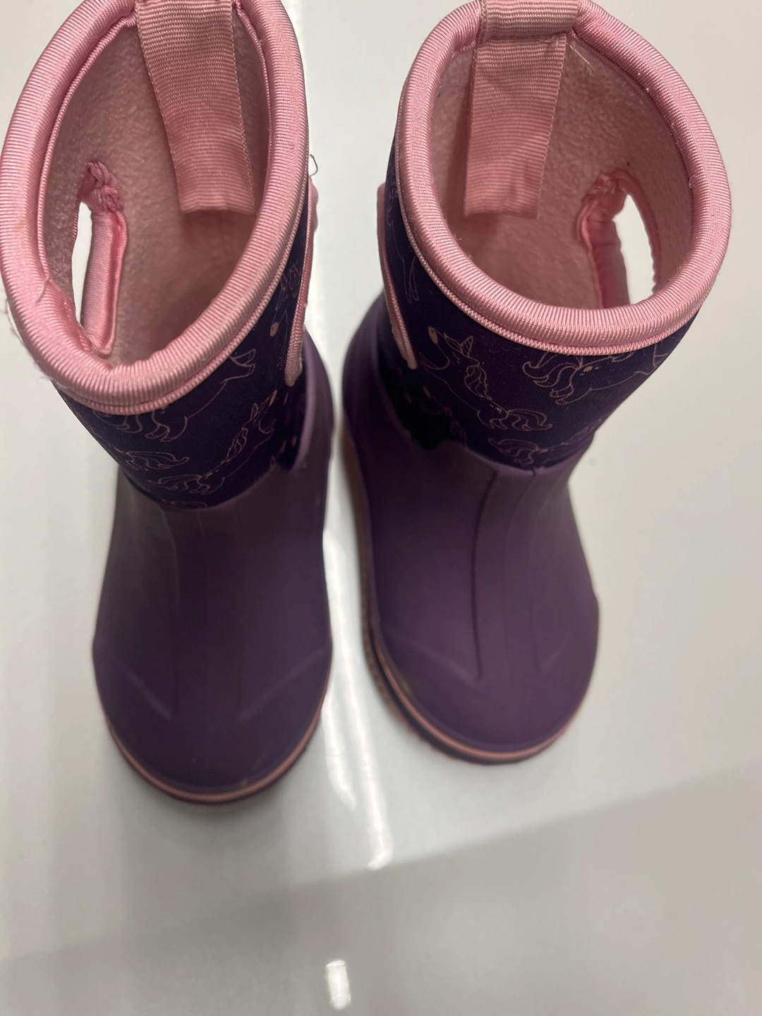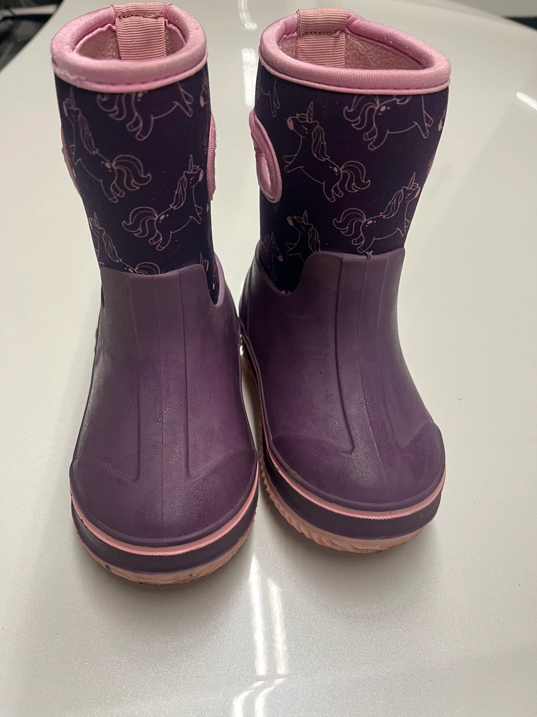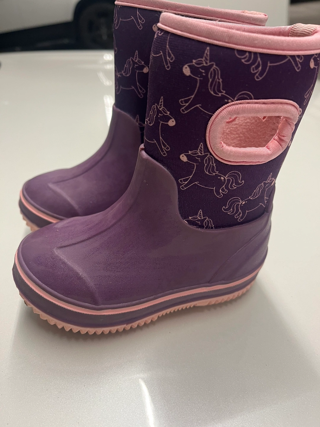 Purple winter boots with unicorn pattern. Size 7 (toddler) Worn only a few times Pet free, smoke free home