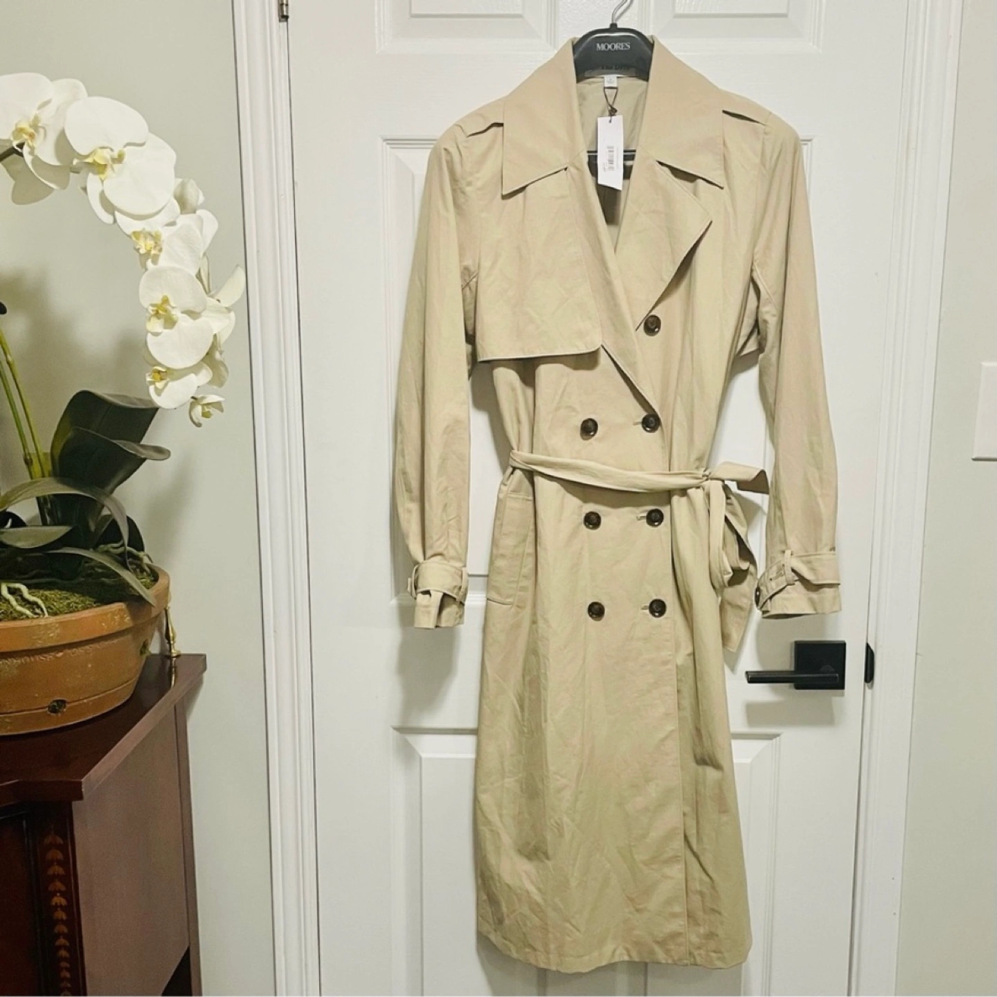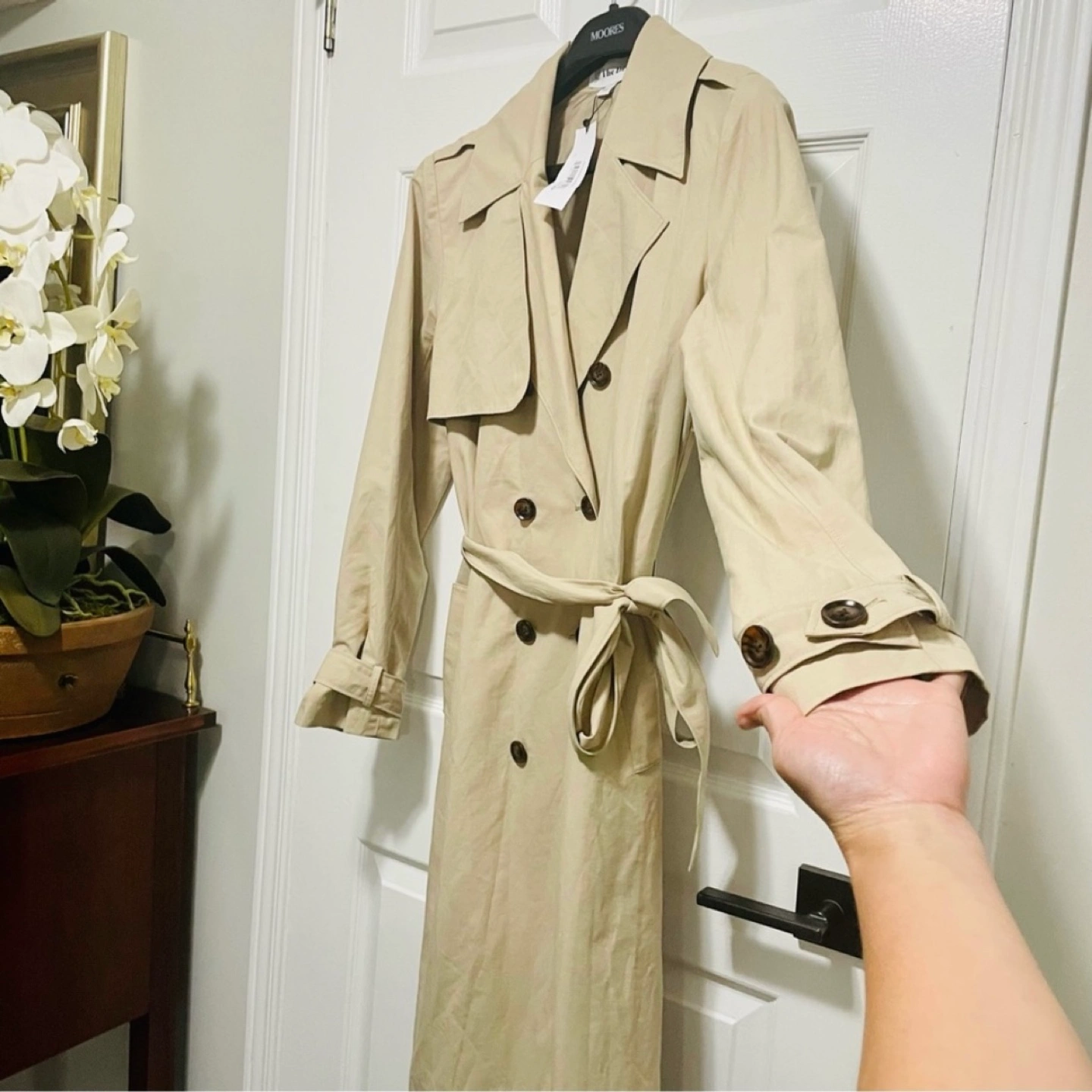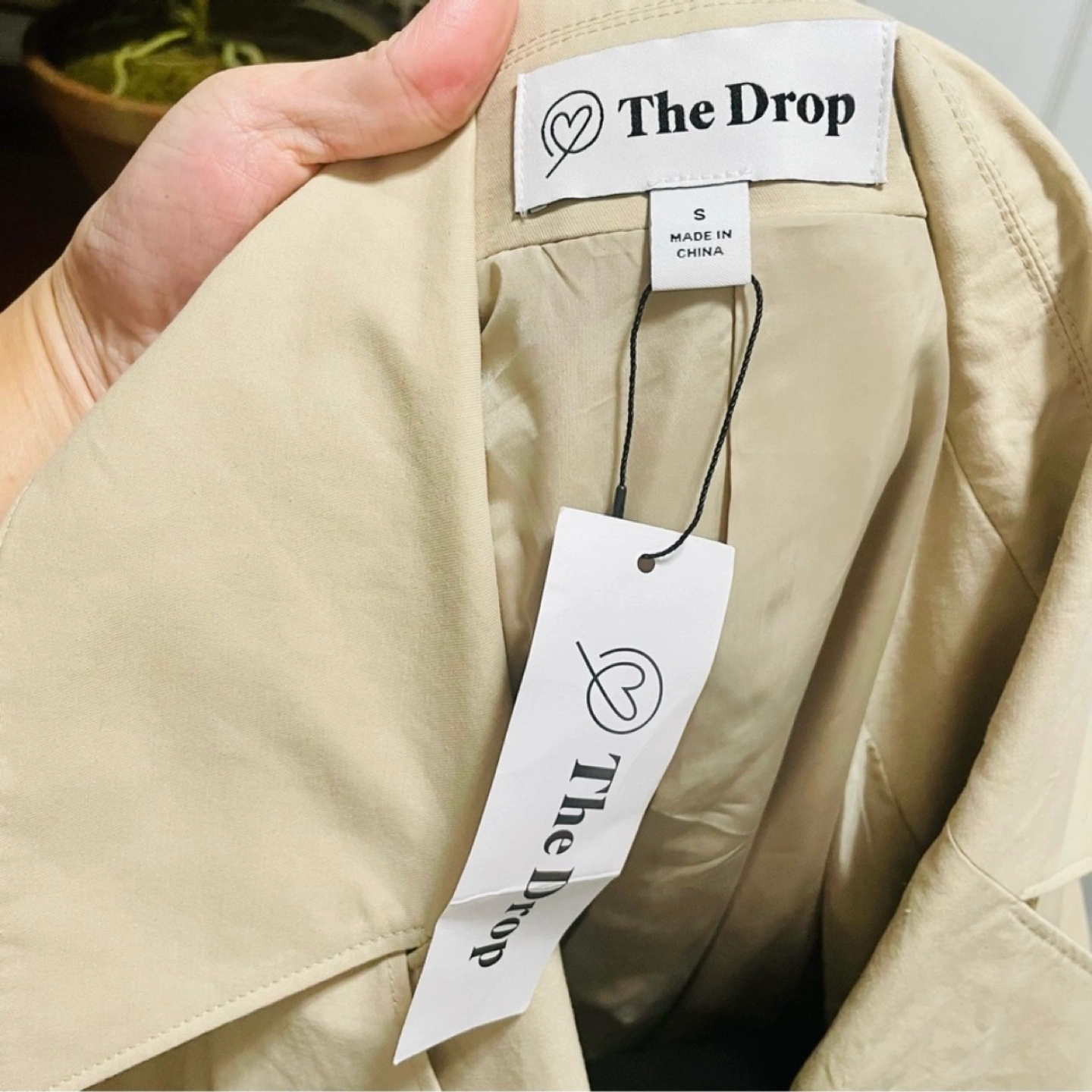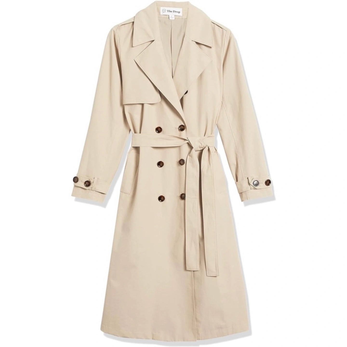 The Drop® Women's Noa Trench Coat Brand New with Tags Size Small Description: - Fit: Loose- designed for comfort - Cotton nylon blend - Functional pockets Product Details: Fabric type: 64% Cotton, 36% Nylon Care instructions: Machine Wash Closure type: Pull On Length: Long Length