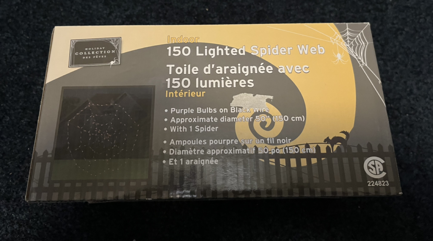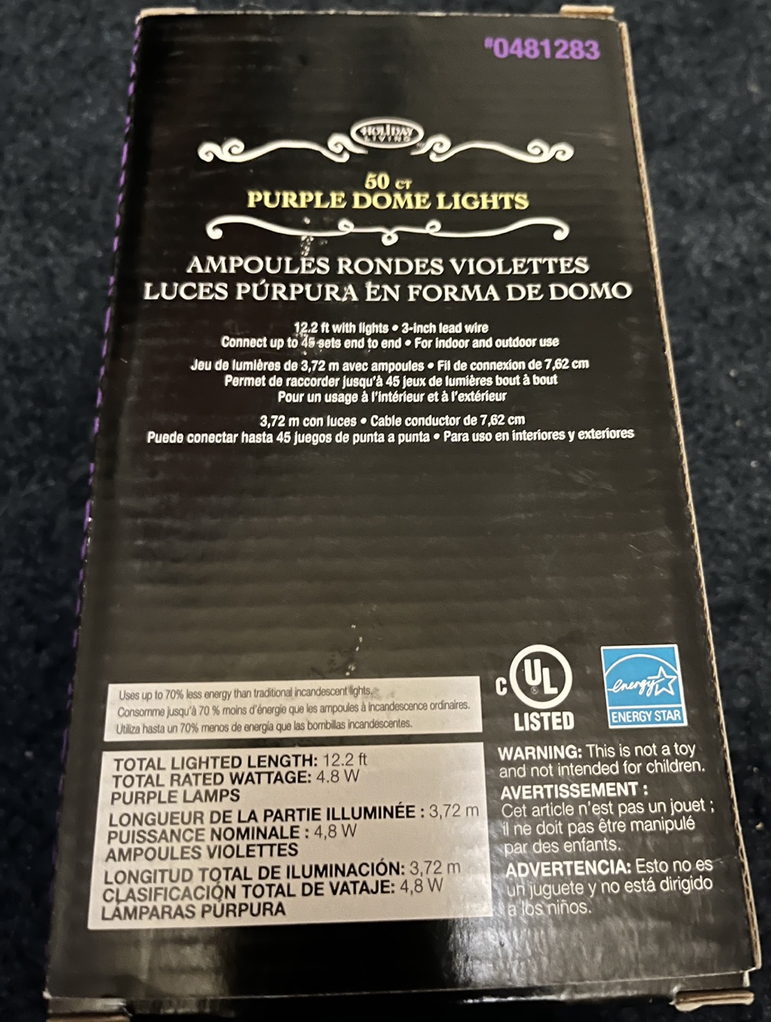 Great for Hallowe’en! BNIB (both sets) Both sets for $20 150 Lighted Spider Web -purple bulbs on a black wire -approximate diameter 50” (150cm) -with one spider Purple LED Dome Lights -50 count -12.7 feet (12.2 ft with lights/ 3 inch lead wire) -for indoor and outdoor use