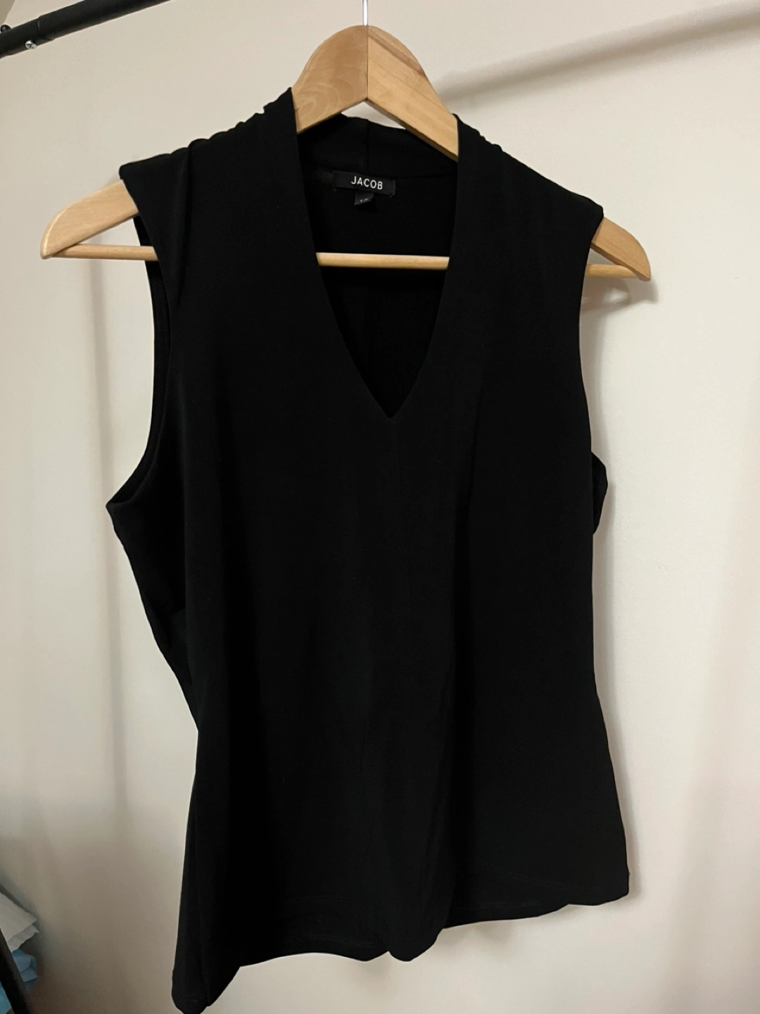Jacob Black sleeveless blouse with a v-neck and mock neck. Heavier fabric, great for winter. Size Large. Polyester mix. . . . . . #grunge #edgy #2010s #officewear #businesscasual